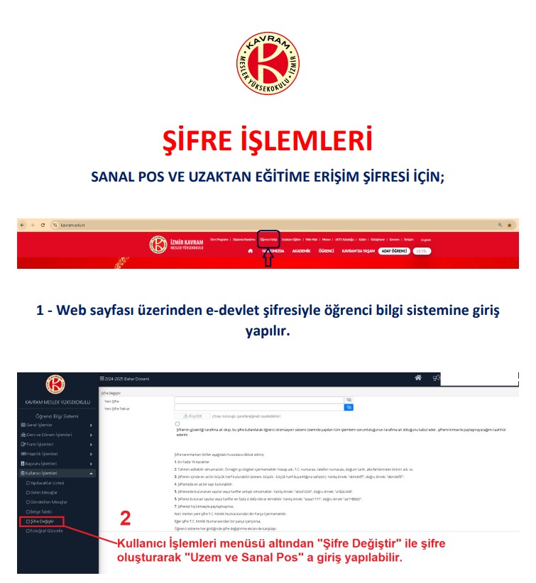"pos.kavram.edu.tr" sistemine giriş yaparken şifre işlemleriyle ilgili adımları takip edebilmeniz için görselden gerekli bilgileri bulabilirsiniz.