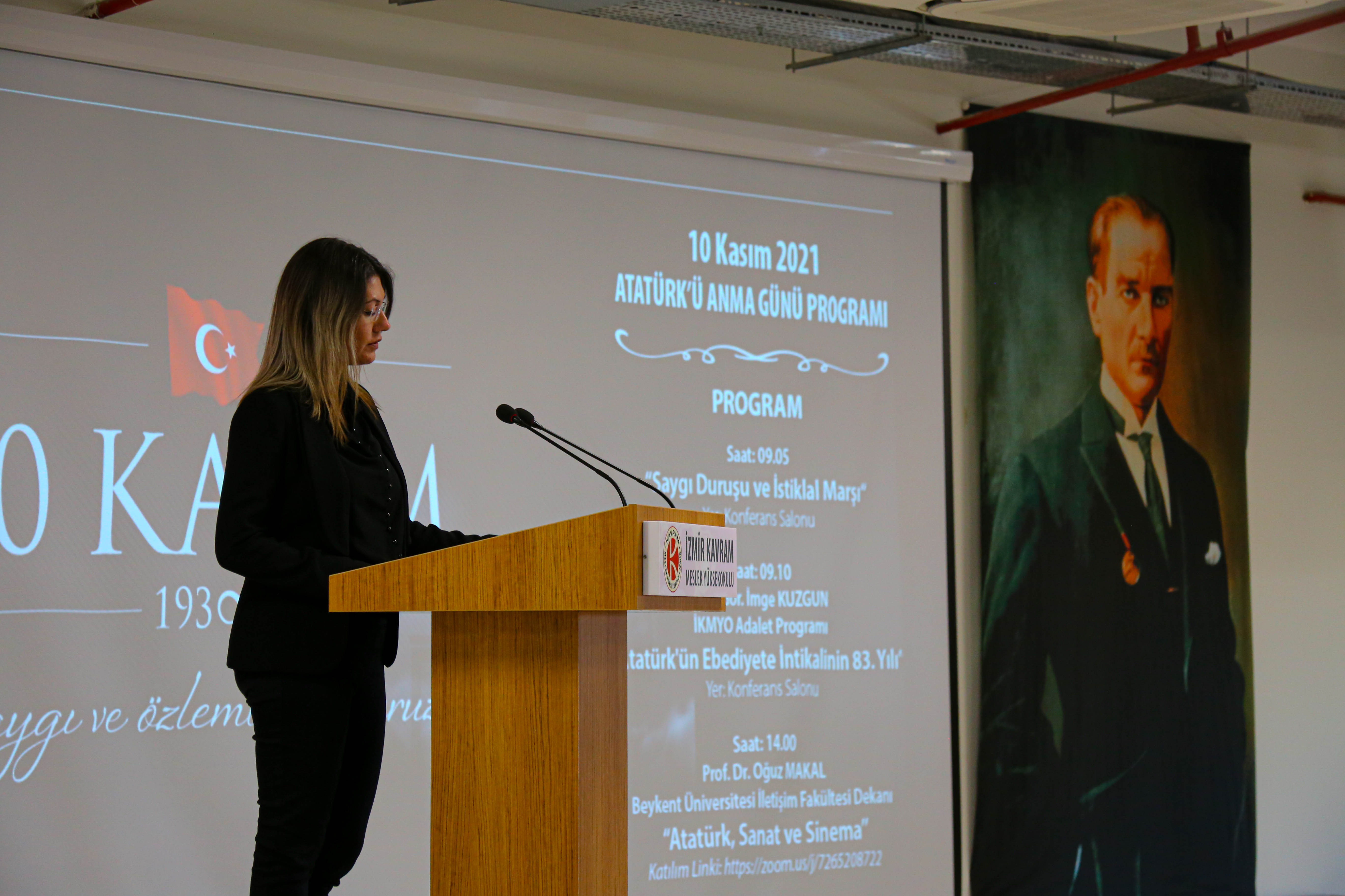 Ulu Önderimiz Gazi Mustafa Kemal Atatürk’ün aramızdan ayrılışının 83. yıldönümü İzmir Kavram Meslek Yüksekokulu konferans salonunda düzenlenen törende anıldı.