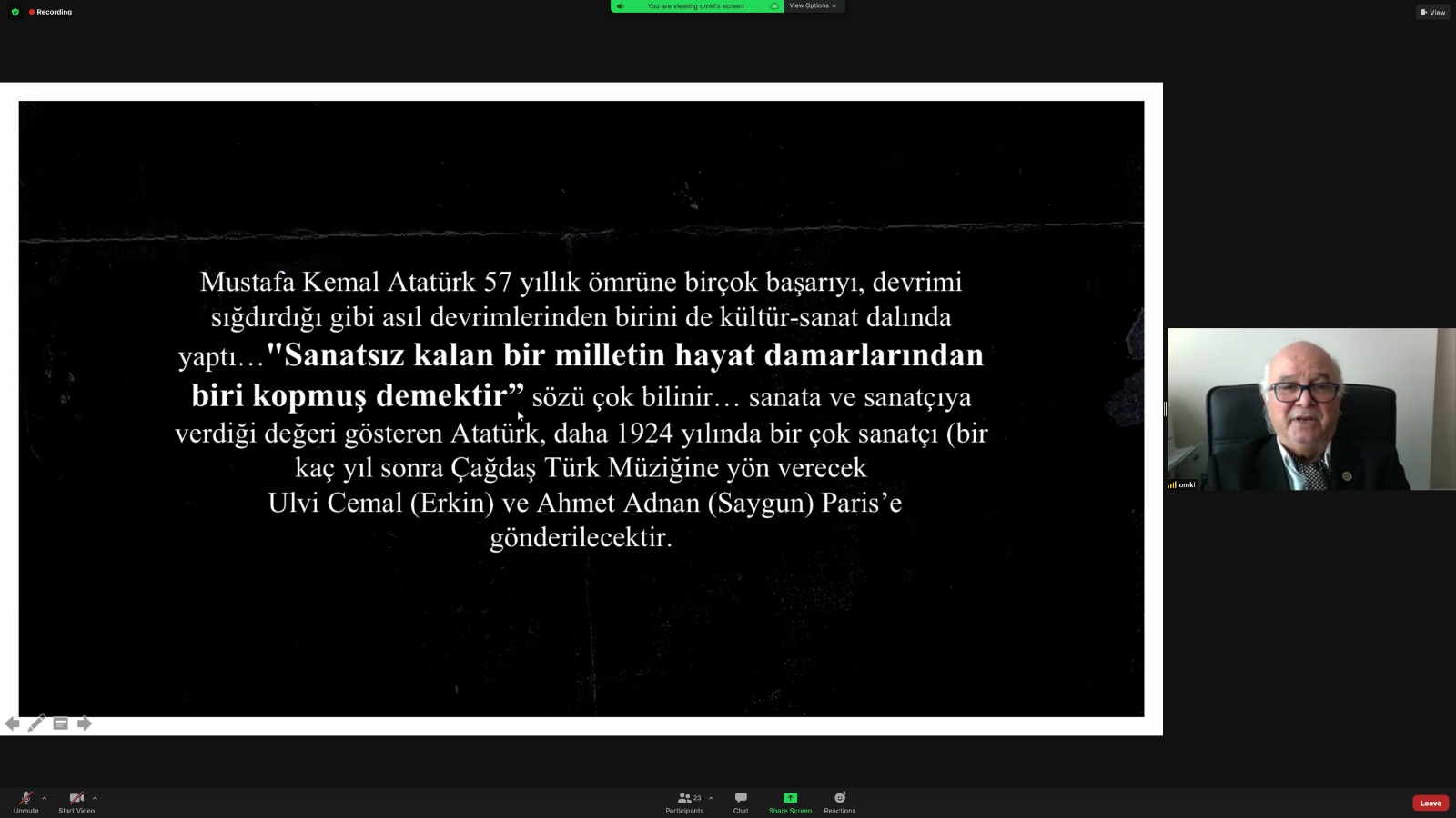 Törenimiz saat 14.00’da Beykent Üniversitesi İletişim Fakültesi Dekanı Sayın Prof. Dr. Oğuz Makal’ın “Atatürk, Sanat ve Sinema” Konulu konuşmasıyla çevrim içi olarak devam etti.