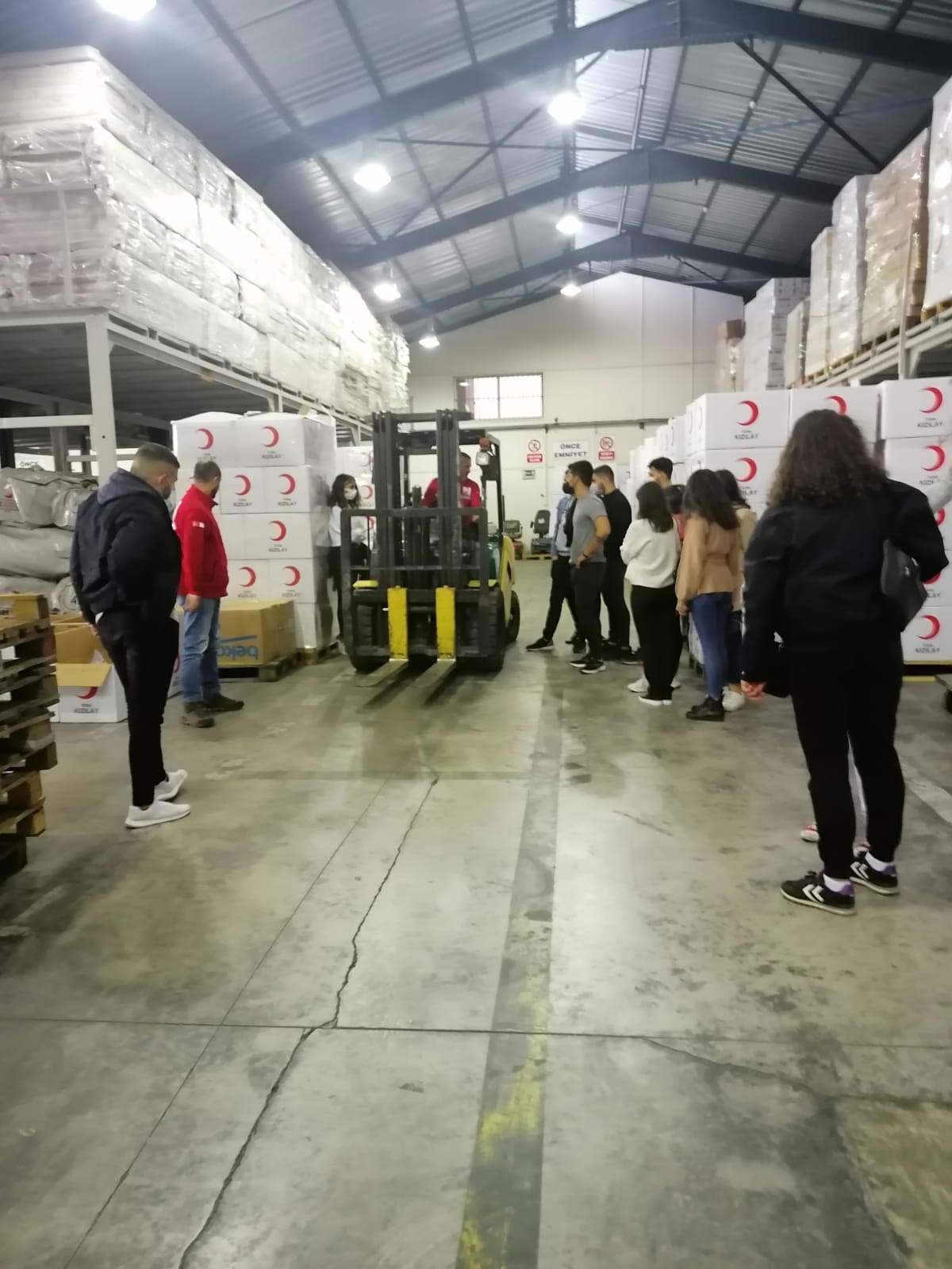 Etkinliğin ikinci bölümünde Türk Kızılay İzmir Bölge Lojistik Merkezi öğrencilerimiz ve akademik personelimiz tarafından ziyaret edilmiş, bu kapsamda çadır, battaniye, mutfak seti gibi yardım malzemelerinin stoklandığı depo, afetzedelere acil beslenme hizmeti verme amacıyla kullanılan mobil mutfak, mobil ekmek fırını ve mobil ikram araçları incelenmiştir.