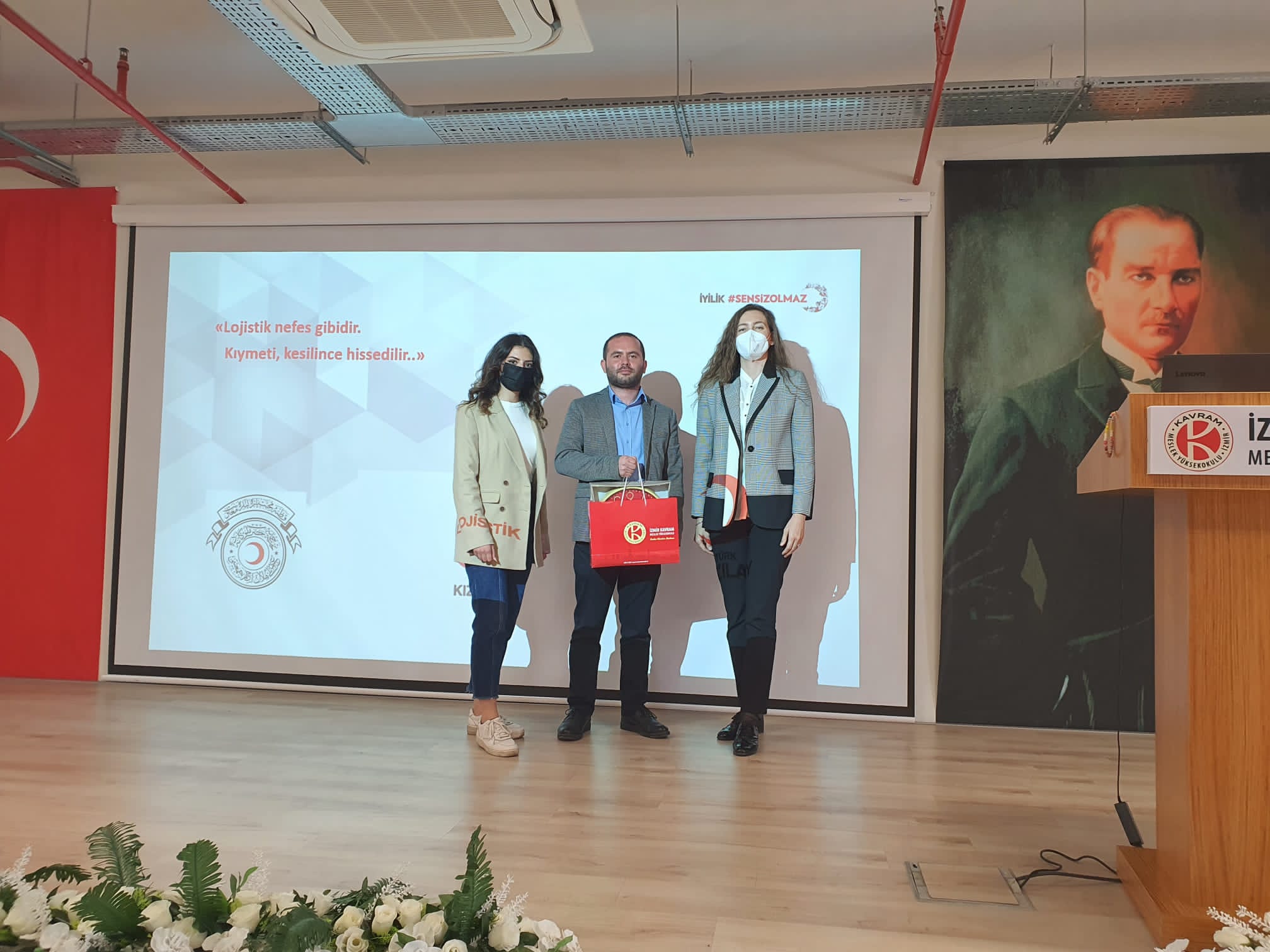 Lojistik Kulübü öğrencilerimizin düzenlemiş olduğu "Afet Lojistiği” semineri ve Türk Kızılay İzmir Bölge Lojistik Merkezi ziyareti öğrencilerimiz ve akademik personelimizin katılımı ile gerçekleşmiştir. Etkinliğin ilk bölümünün Meslek Yüksekokulumuzda gerçekleştirilmiştir. Seminer kapsamında Türk Kızılay Depo ve Stok Yönetimi Uzmanı Müdür Vekili Kadir GÜZELIŞIK Türk Kızılay tarihi, Türk Kızılay Lojistik A.Ş. ve Afet Lojistiği hakkında çok kıymetli bilgiler aktarmıştır.