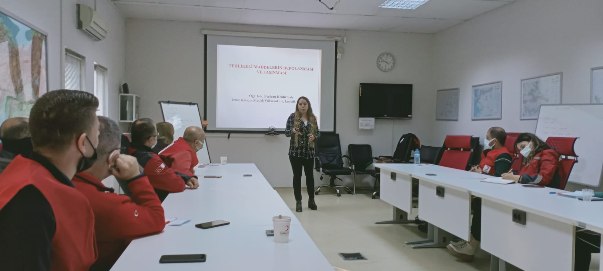 Lojistik Programı öğretim elemanları Dr. Öğretim Üyesi Neslihan Paker, Dr. Öğretim Üyesi Özlem Koçtaş Çotur ve Öğretim Görevlisi Berivan Kızılırmak Türkiye'nin en köklü yardım kuruluşlarından biri olan Türk Kızılay'ın İzmir Bölge Afet Müdürlüğü çalışanlarına Problem Çözme Teknikleri, Depo Yönetimi ve Tehlikeli Madde Lojistiği konularında eğitim verdiler. Farklı bölümlerden yaklaşık 20 çalışanın katılımcı olduğu eğitimler oldukça verimli ve keyifli geçti.