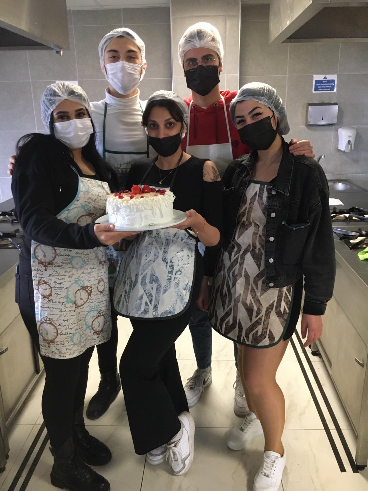 İzmir Kavram Meslek Yüksekokulu (İKMYO) Sivil Havacılık Kabin Hizmetleri Programı öğrencileri ile Yüksekokulumuz bünyesinde bulunan Aşçılık Programı Mutfak Atölyesi’nde, ‘’ Pastanı Yarat ’’ aktivitesi yapılmıştır. Öğrencilerimiz hijyen kurallarına uyarak, Aşçılık Programı Öğr. Gör. Onur ÖZDEN önderliğinde, ekiplere ayrılarak kendilerine verilen malzemelerle, pasta yapmaları istenmiştir.