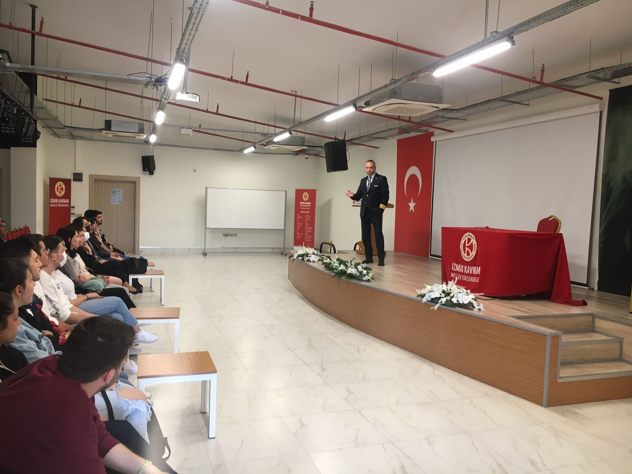 İzmir Kavram Meslek Yüksekokulu (İKMYO) Sivil Havacılık Kabin Hizmetleri Programının düzenlediği “Kariyer Günleri’’ kapsamında Kaptan Pilot Serdar OFLAS, Sivil Havacılık Kabin Hizmetleri öğrencileriyle buluştu.