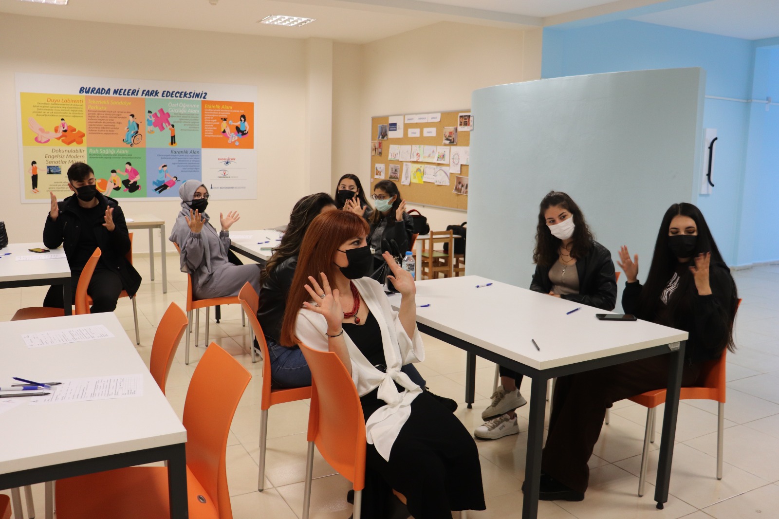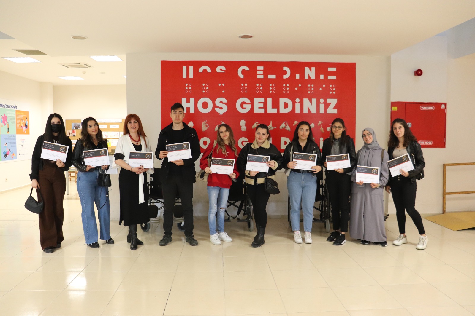 Meslek Yüksekokulumuz Sosyal Hizmetler Programı öğrencileri İzmir Büyükşehir Belediyesi’ne bağlı Örnekköy Sosyal Projeler Yerleşkesi’nde bulunan "Engelli Farkındalık Merkezi" ve “İzmir Dokunulabilir Engelsiz Modern Sanatlar Müzesi (İZDEM)” ne ziyaret gerçekleştirdi. Engellilerin toplumsal yaşam içerisinde karşılaştıkları güçlüklere ilişkin farkındalığın arttırılması amaçlanan ziyarette, öğrencilerimiz sosyal hizmetler alanının önemli bir müracaatçı grubunu oluşturan engellilerin yaşadıklarını uygulamalı olarak deneyimleme imkanı buldu. Program öğrencileri; işaret dili, duyu labirenti, tekerlekli sandalye parkuru, özel öğrenme güçlüğü alanı, karanlık ev (görme engelliler için) ve ruh sağlığı alanı gibi uygulamalı alanlarda eğitimlere katıldı, uygulama yaptı ve İZDEM’de dünyaca ünlü pek çok sanatçının dokunulabilir ve sesli betimlemeli olarak yer alan eserlerini inceleme imkanı buldu.