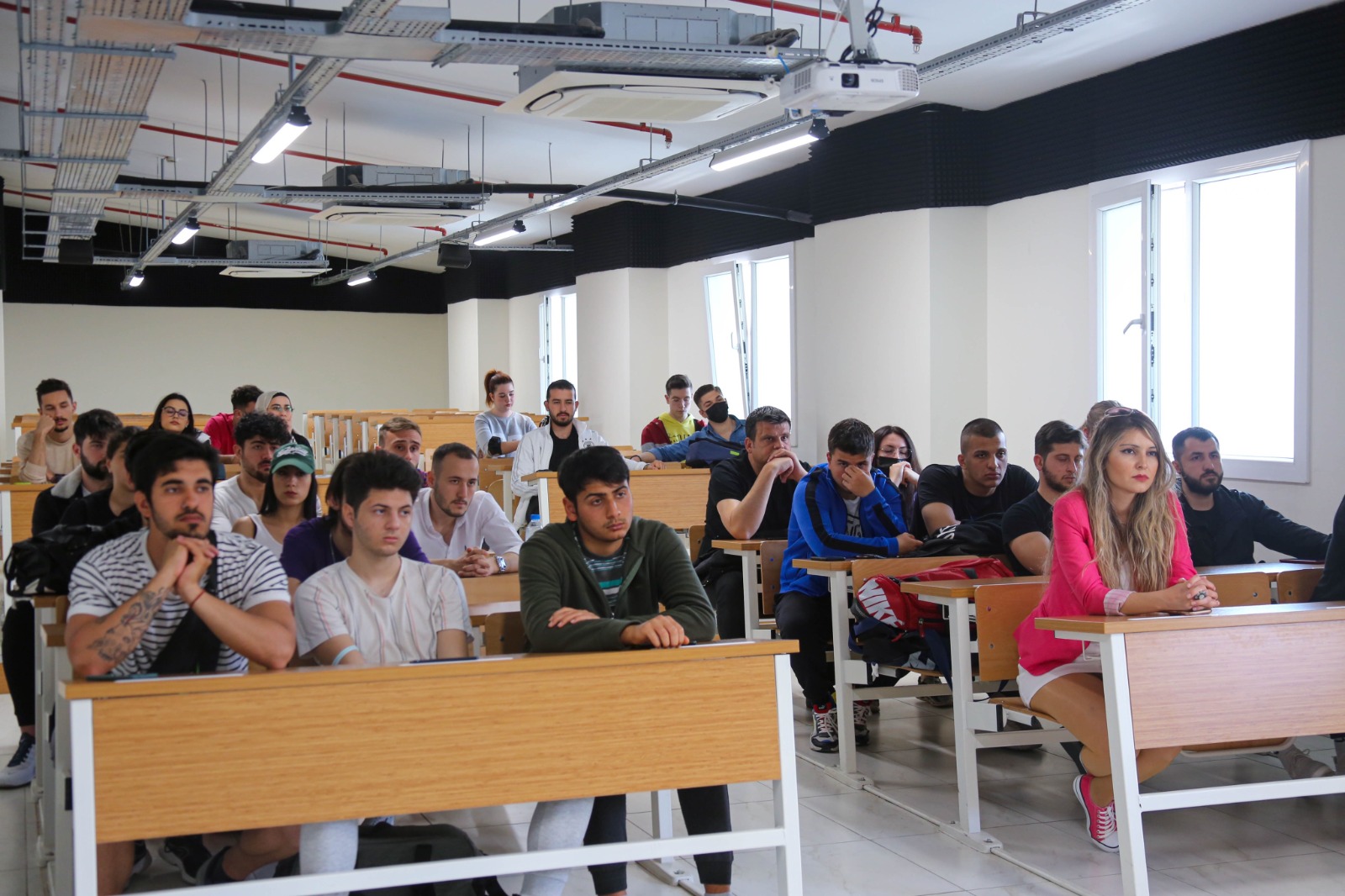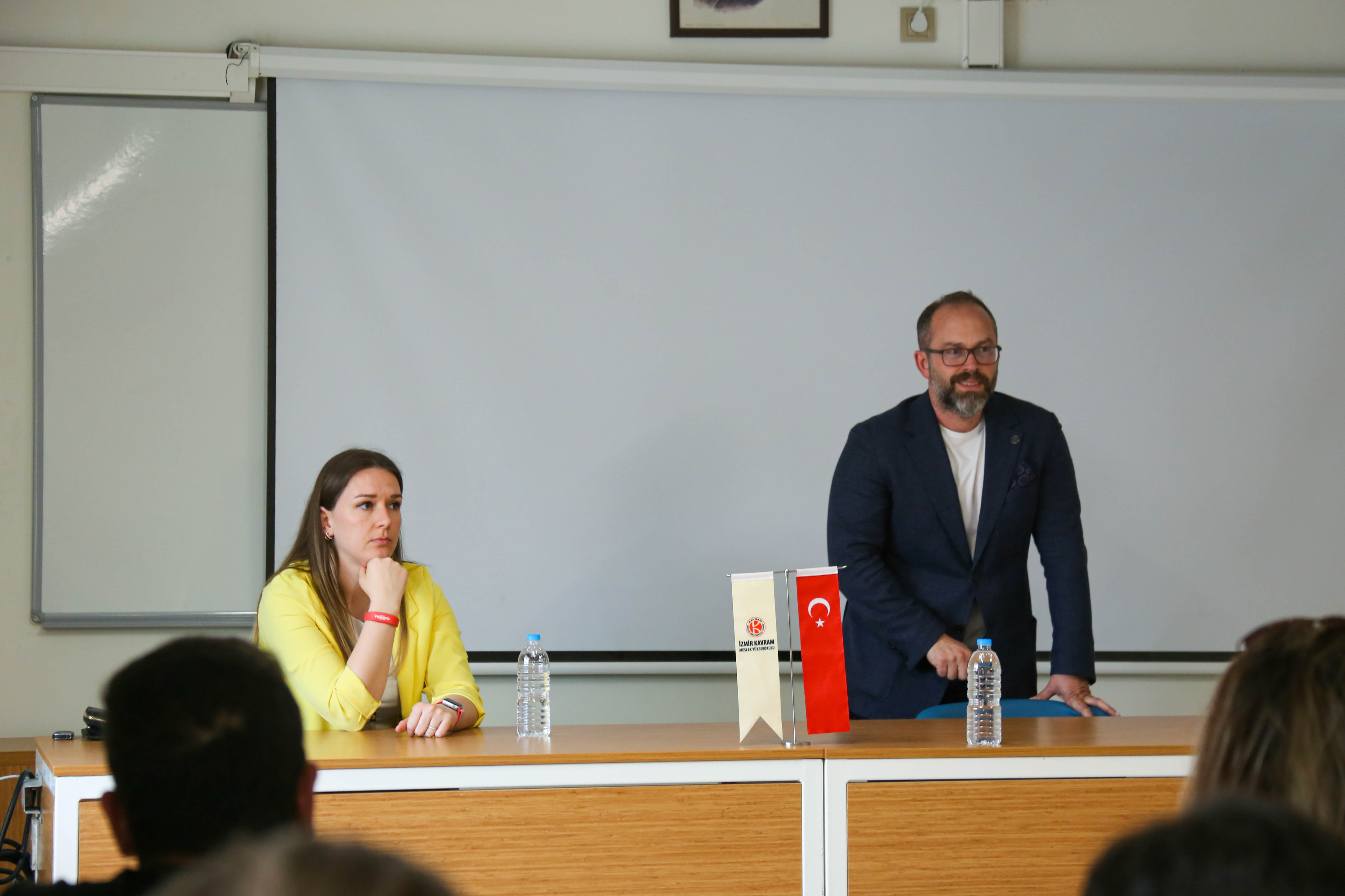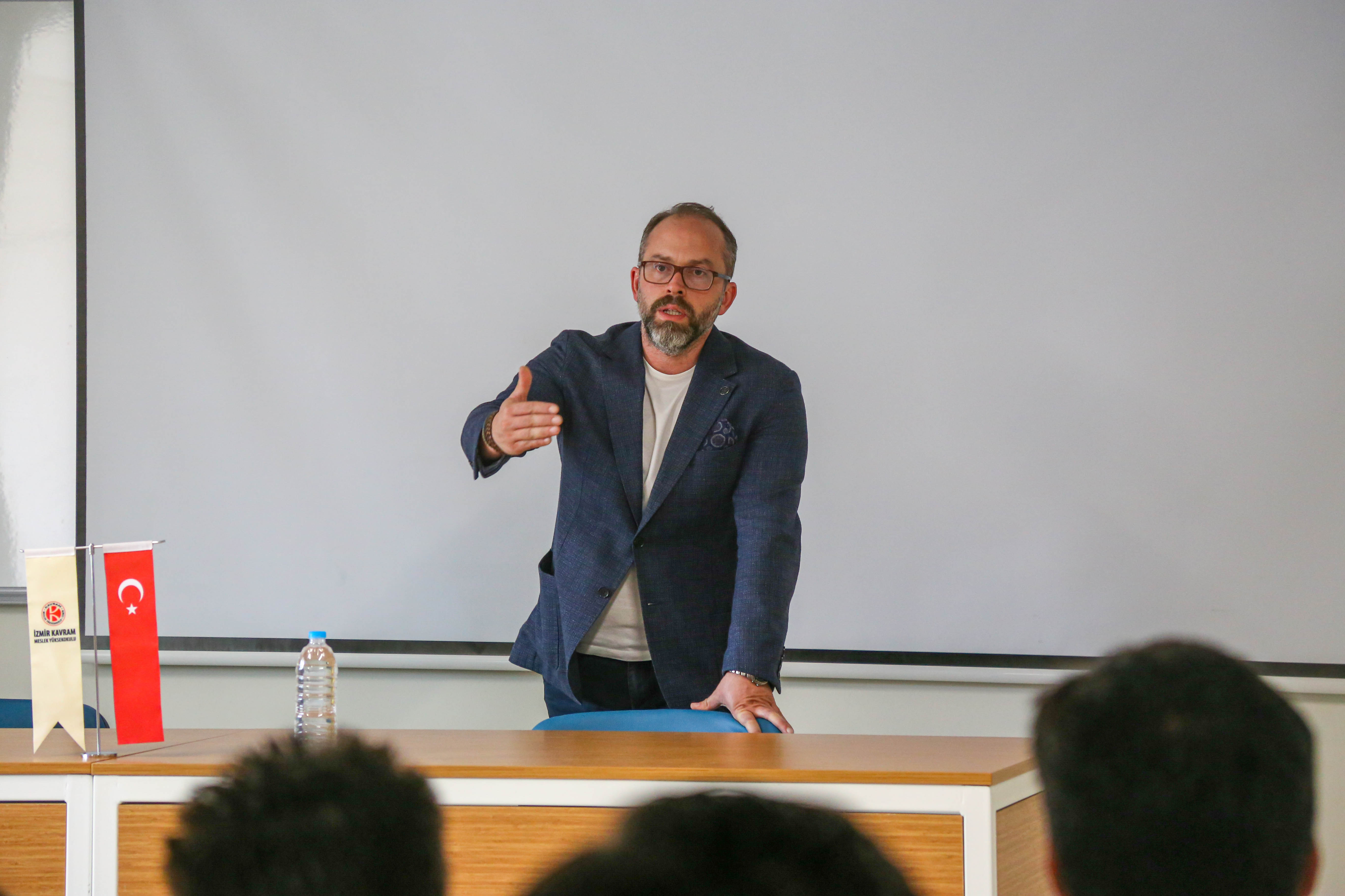 Sayın Üstüner öğrencilerimize kariyer yönetimi, Mistral Carrera olarak işe alımlarda nelere dikkat ettiklerine, fitness sektöründe spor yönetimi alanında kalifiye elemanın özellikle İzmir ilindeki azlığından öğrencilerin bu konuda kendilerini geliştirdikleri takdirde sektörde yer alabileceklerini, hangi departmanda çalışılırsa çalışılsın rakipleri karşısında fark yaratarak aranılan personel olacaklarından, bilgi, deneyim ve tecrübelerden bahsetti. Sayın Atışeri Kolsallayan ise Spor Yöneticiliği mezunu olarak alanda çalışmanın vermiş olduğu mutluluktan bahsederek İzmir ilinde spor camiasında alan mezunu insanın azlığından insanların daha çok fitness ya da personal trainer kısmına yöneldiklerini ve satış kısmında büyük açığın olduğundan bahsetti.
