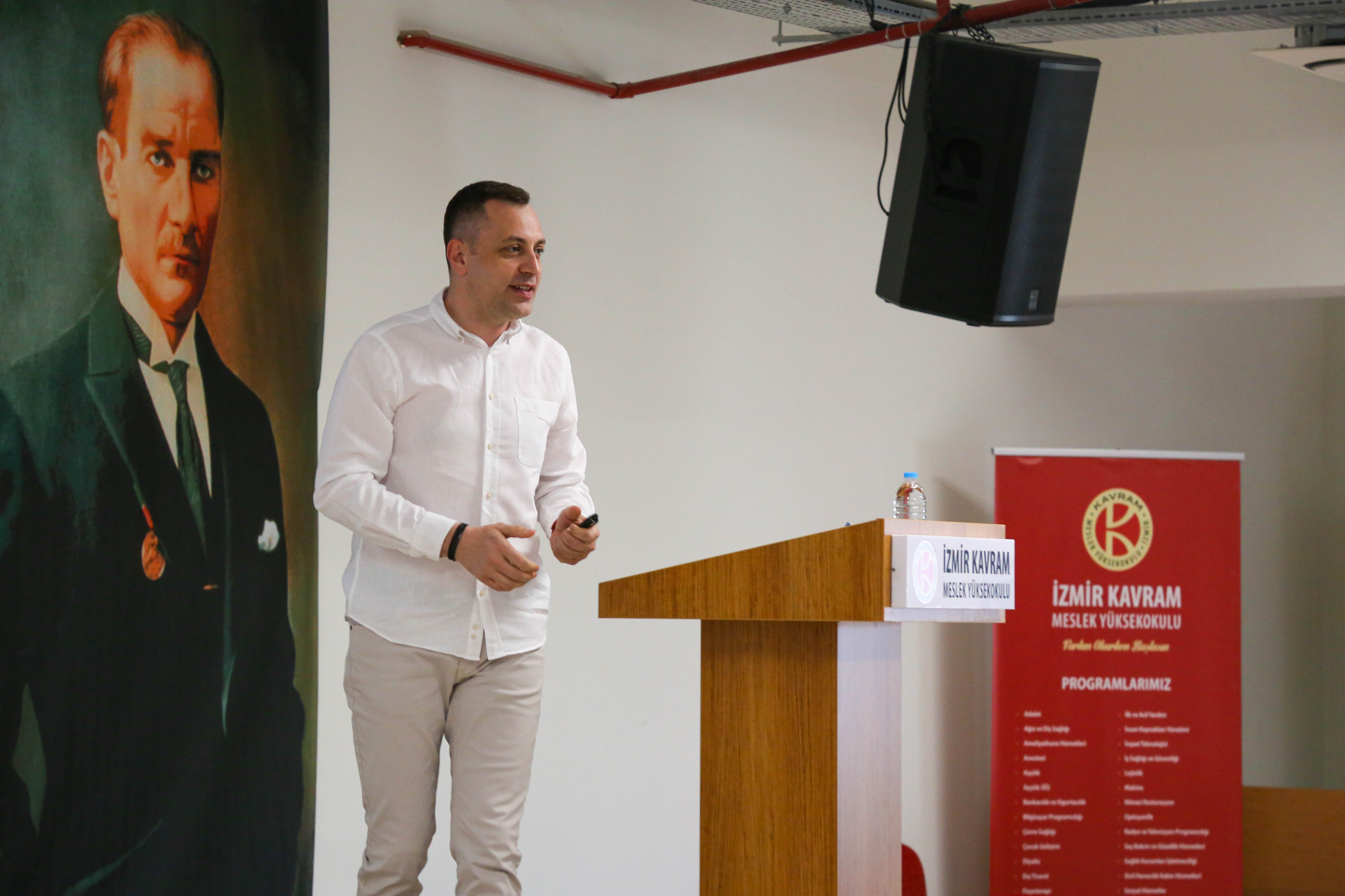 Serkan BAŞTUĞ, ‘Sağlıkta Kariyer Yolculuğu’ konulu sunumları ile program öğrencilerinin kariyer hedeflerini şekillendirecek mesleki yetkinlikler konusunda geleceğe hazırlayacak paylaşımlarda bulunmuştur. Bahar DOĞAN ise, sağlık kurumlarında işe alım sürecindeki mülakatlarla ilgili bilgilendirmeler yapmış, öğrencilerin iş başvuru sürecinde dikkat etmesi gerekenlere değinmiştir.