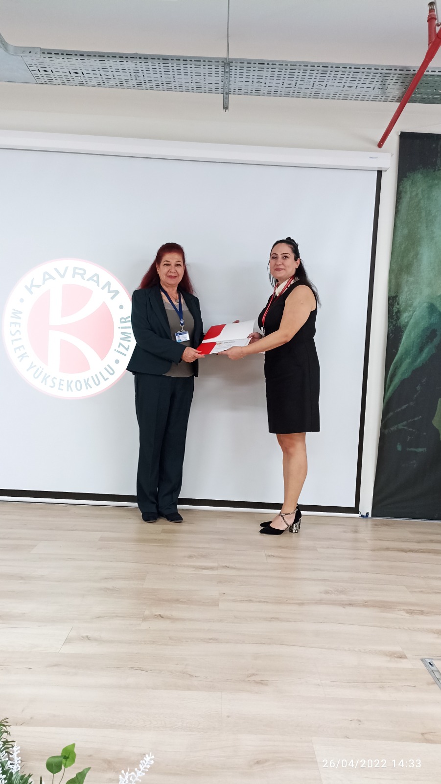 Etkinliğin sonunda Prof. Dr. Türkan ÖZBAYIR’ a öğrencilerimize sağladığı katkıdan dolayı teşekkür belgesi takdim edildi.