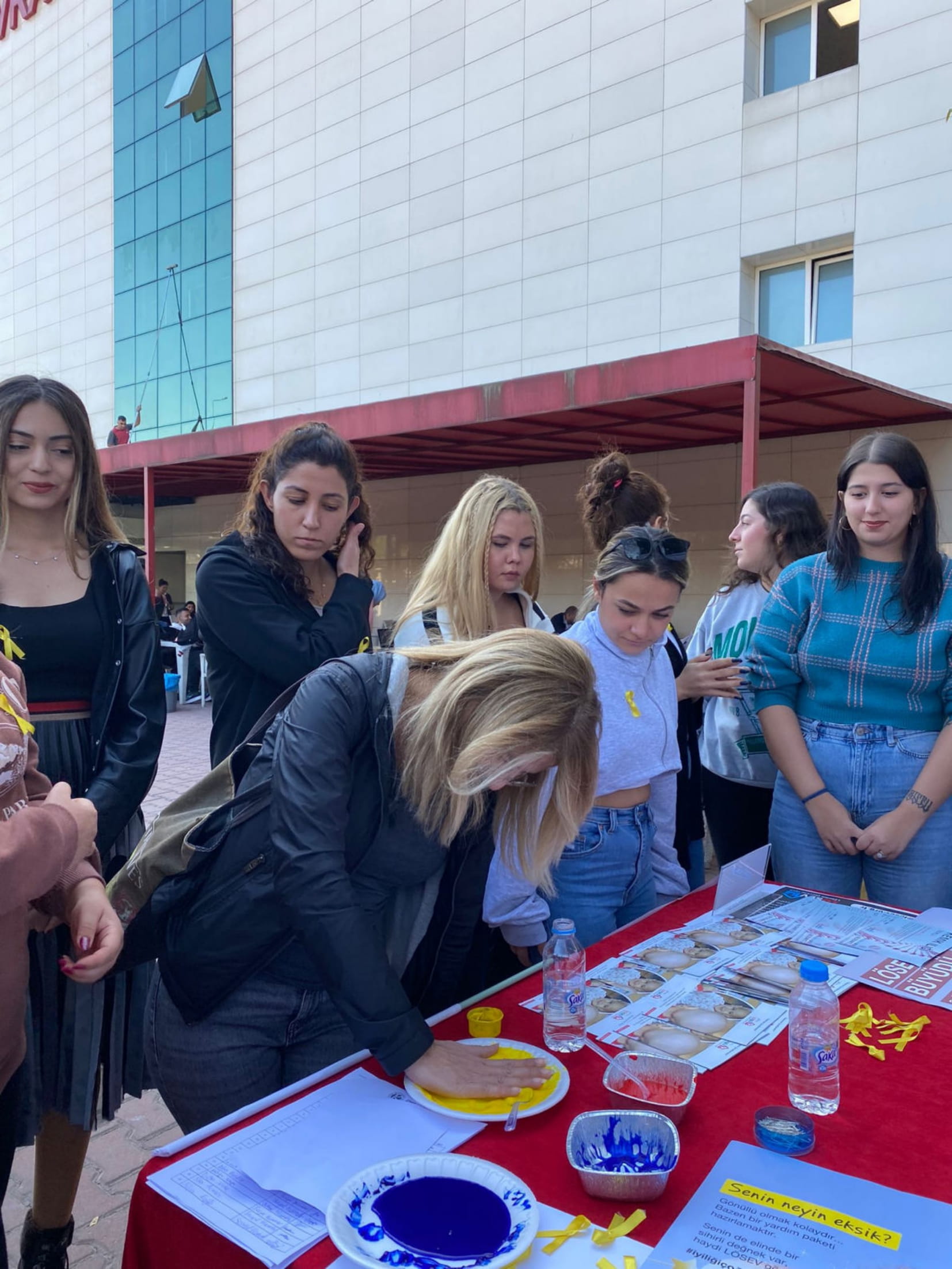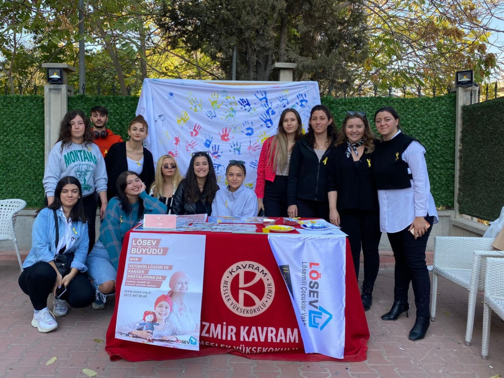 İzmir Kavram Meslek Yüksekokulu, Sosyal Hizmetler Programı, Öğretim Görevlisi Hülya KARAKARTAL tarafından "Gönüllülük Çalışmaları" dersi kapsamında 31.10.2022 tarihinde düzenlenen “LÖSEV’de GÖNÜLLÜLÜK” etkinliğine, Lösemili Çocuklar Sağlık ve Eğitim Vakfı (LÖSEV)’nda “İzmir Halkla İlişkiler Sorumlusu olarak” olarak görev yapan Sayın Tuğçe GÜCÜYENER katılmıştır. Lösemi ve kanser hakkında bilgi paylaşımı ile başlayan sunum, Lösev’in kuruluş amacı, bugüne kadar yaptığı çalışmalar ve gelecek hedefleri ile Lösev’de gönüllü olarak neler yapılabilir (?) konularında bilgi aktarımı ile devam etmiştir. Sunum sonrasında, okulumuz arka bahçesinde gönüllüler ile birlikte “Yaşama El Ver!” etkinliği gerçekleştirilerek; 2-8 Kasım lösemili çocuklar haftası için farkındalık çalışması yapılmıştır.