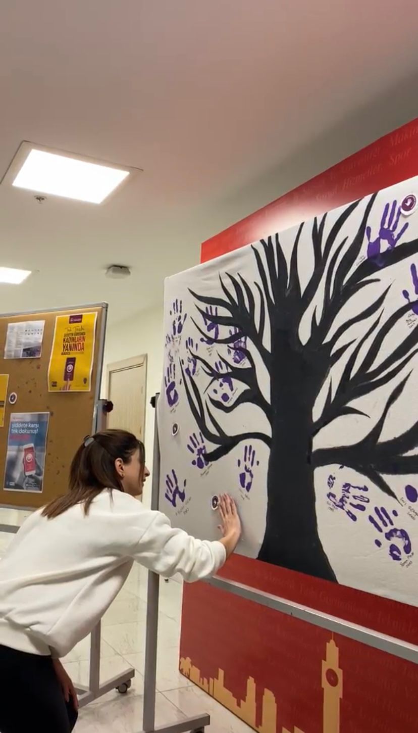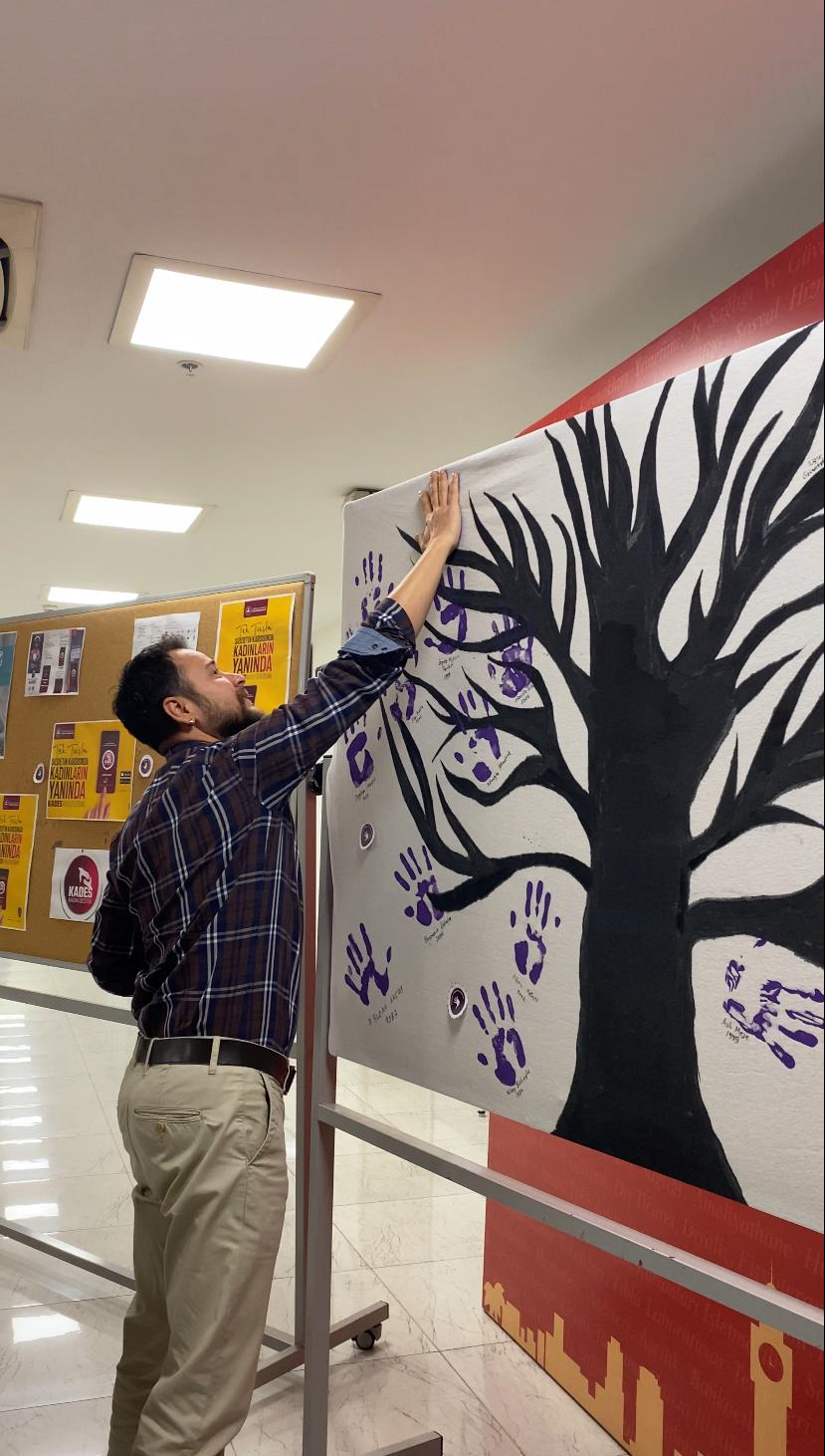 Etkinliğe, çeşitli programlardan katılan öğrenciler; İçişleri ve Emniyet Genel Müdürlüğü iş birliğinde gerçekleştirilen, kadın ve çocukların maruz kaldığı şiddet gibi eylemlerin en aza indirmek amacıyla geliştirilen ve resmi bir uygulama olan "Kadın Acil Destek İhbar Sistemi Projesi " uygulamasına yönelik, farkındalık yaratmak amacıyla broşür dağıtan gençler, "Kadına Yönelik Şiddete Dur! " diyen herkesin el izinin bulunduğu bir hayat ağacı oluşturdu.