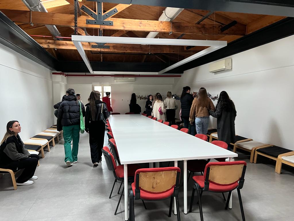 2022-2023 Akademik Yılı Güz Kariyer dönemi etkinlikleri kapsamında İç Mekan Tasarımı Programı 1. ve 2. sınıf öğrencilerimiz ile Mimarlar Odası İzmir Şubesi'nin hizmet binası olarak kullanılan İzmir Mimarlık Merkezi'ne teknik gezi gerçekleştirildi. Merkezi mekansal olarak deneyimleyen öğrencilerimiz Y. Mimar Çiçek TEZER'in "Bir tasarımcının kariyer deneyimleri" isimli sunumuna katıldı. Öğrencilerin profesyonel hayata adım attıklarında karşılaşacakları fırsatların detaylandırıldığı sunumda Y. Mimar Çiçek TEZER, bir tasarımcı olarak kişisel kariyerindeki dönüm noktalarını anlattı. Bununla birlikte tasarımcıların kolektif çalışmalar içerisinde yer alacağı süreçleri de gerçekleştirdiği uygulamalar üzerinden detaylandırdı.