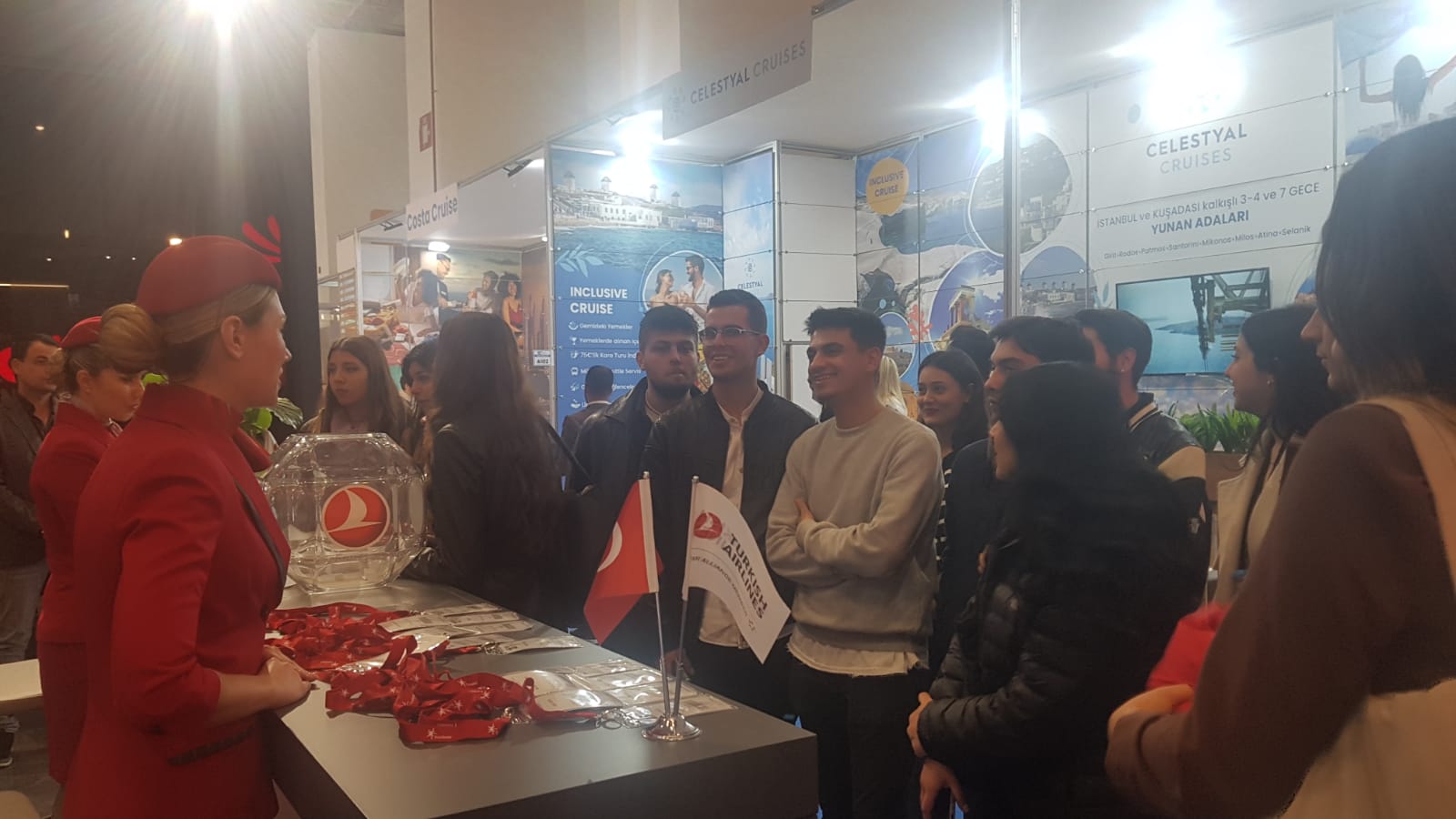 Sivil Havacılık Kabin Hizmetleri Programı öğrencilerimiz, Travel Turkey 2022 İzmir Fuar'ında Sivil Havacılık sektörünün önde gelen işletmeleriyle bir araya gelerek turizm ve havayolu sektöründeki en son trendler, iş imkânları ve sektör hakkında detaylı bilgi edinebilme fırsatı buldular.
