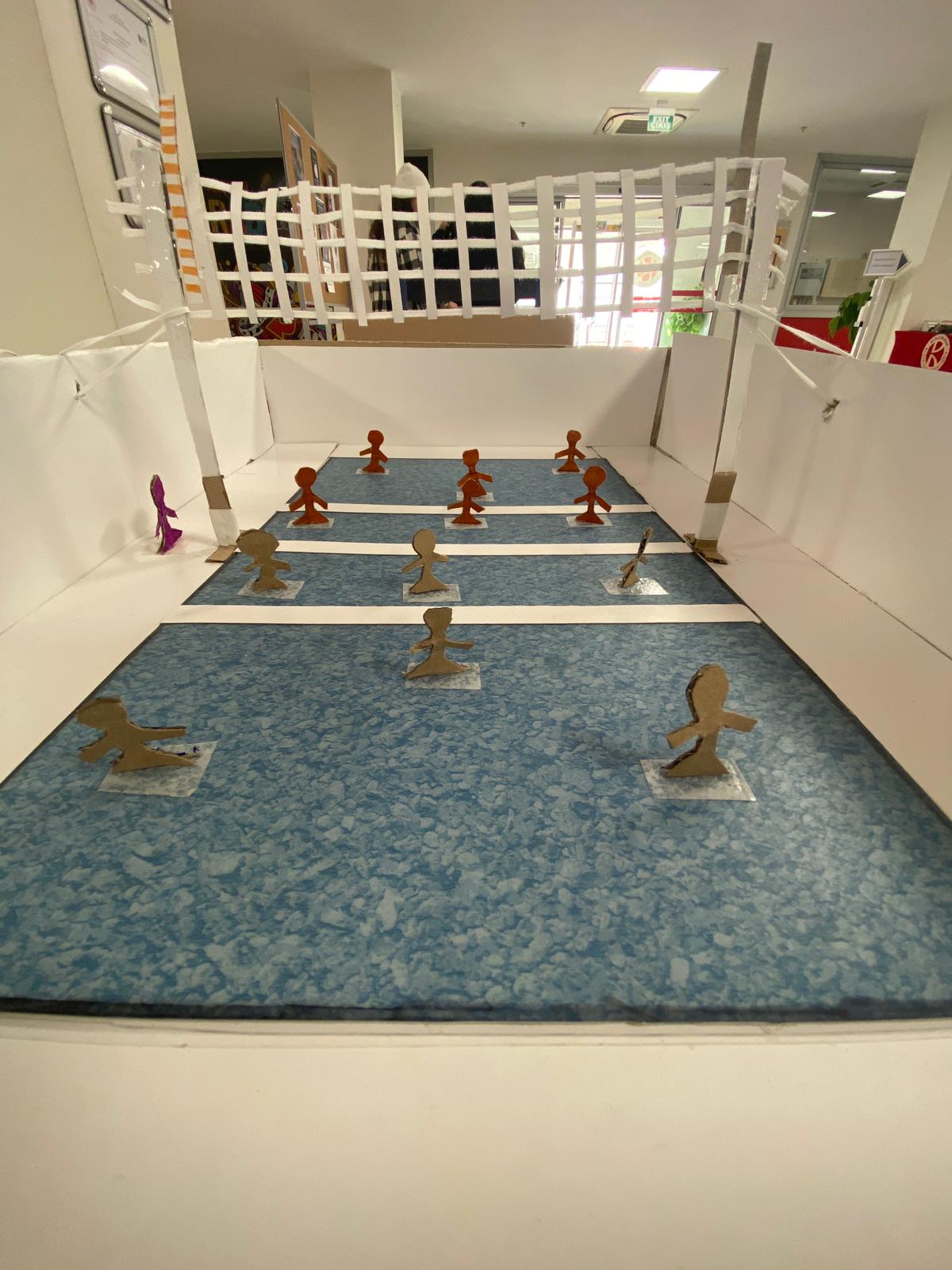 Tasarladıkları spor sahaları İKMYO fuaye alanında tüm öğrencilerin, akademik ve idari personelin beğenisine sunuldu.