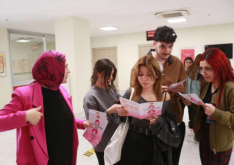 Dr. Öğr. Üyesi Şule OLGUN tarafından “ Kendi kendine meme muayenesi” teknikleri uygulamalı olarak gösterildi ve “muayene yapılırken dikkat edilmesi gereken hususlar” hakkında kişiler bilgilendirildi. Gösterilen ve anlatılan bilgileri kapsayan broşür etkinliğe katılan tüm katılımcılara dağıtıldı