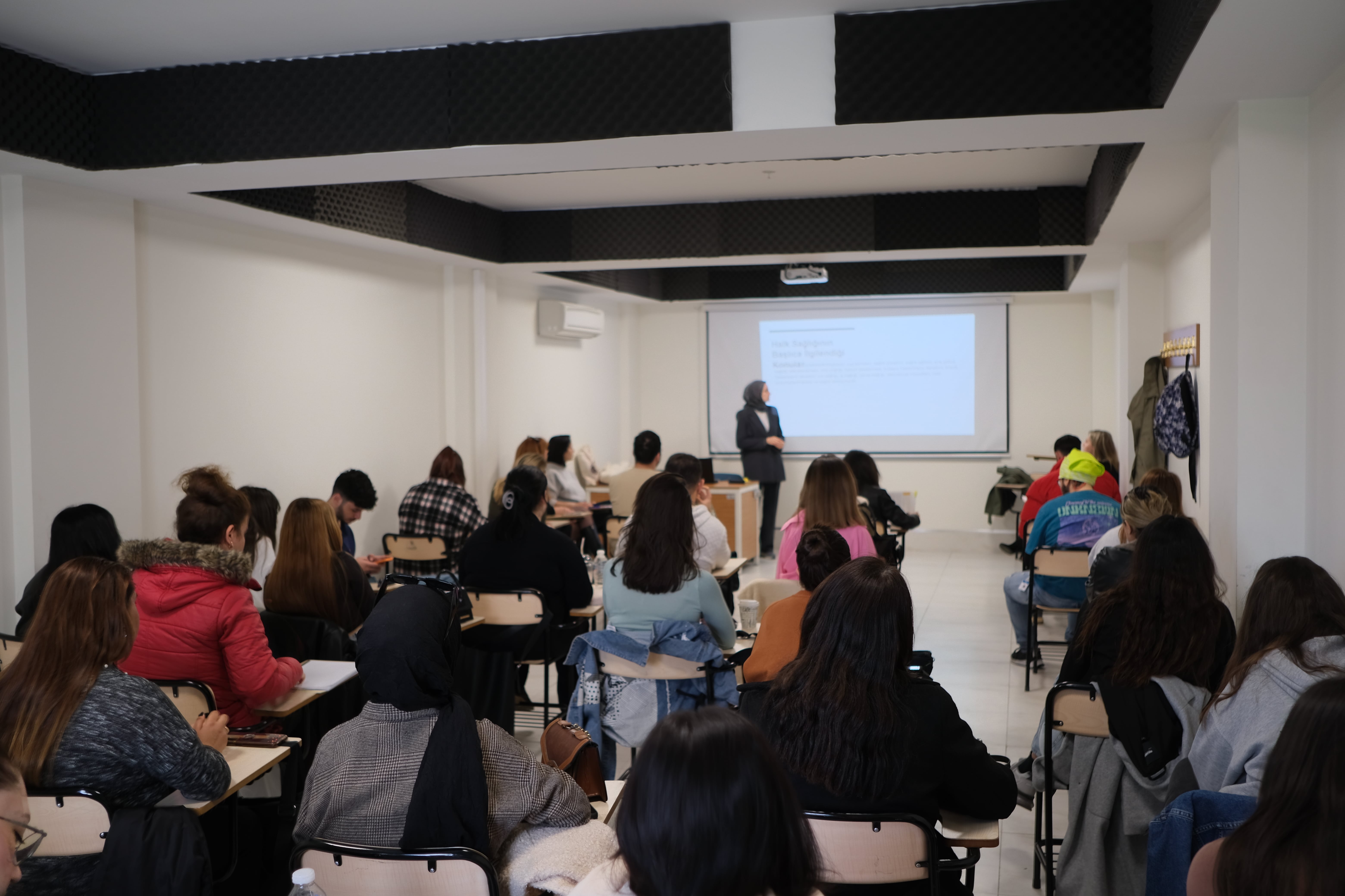 Yüksekokulumuz Sosyal Hizmetler Programı tarafından, “Kariyer Günleri” kapsamında, İzmir Halk Sağlığı Hizmetleri Başkanlığı Toplum Sağlığı Birimi’nde görevli Sosyal Hizmet Uzmanı Fatmanur Dural’ın katılımıyla, “Halk Sağlığı Hizmetlerinde Göçmenlere Yönelik Sosyal Hizmet Uygulamaları” etkinliği gerçekleşti. Etkinliğin amacı, halk sağlığı hizmetlerinde sosyal hizmetlerin önemine ilişkin farkındalık oluşturulması ve program öğrencilerinin kariyer süreçlerinde ilgili alanda ne gibi yeterliliklerin olması gerektiğine dair bilgi verilmesidir. İçeriğini halk sağlığı hizmetleri, halk sağlığının temel ilkeleri, Göç Sağlığı Dairesi Başkanlığı’nın görevleri ve halk sağlığı hizmetlerinde sosyal hizmetlerin önemi gibi konuların oluşturduğu etkinlik; hem sahaya ilişkin bilgi veren, hem de kendi kariyer yolculuğunu program öğrencileriyle paylaşarak katkı sunan Sosyal Hizmet Uzmanı Fatmanur Dural’a teşekkür belgesi takdim edilerek sonlandı.