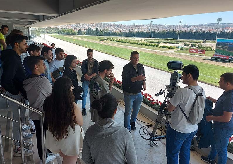 İzmir Kavram Meslek Yüksekokulu Fotoğrafçılık ve Kameramanlık Programı öğrencileri, Türkiye Jokey Kulübü’ne ait televizyon kanalının (TJK TV) İzmir Şirinyer Hipodromu’nda bulunan lokasyonuna teknik gezi gerçekleştirdi. TJK TV yapım ekibinde çalışmalar yürüten Yönetmen Bilgihan Üzüm, Teknik Yönetmen Bulut Sözeri, Kameraman Mücahit Baran, Kameraman Alper Nedim Tiz, Teknik Donanım Attila Bozdemir, Ses Operatörü Abdusselam Orak, Fotofinish Cengiz Vural, VTR Operatörü Emre Doğan, KJ Operatörü Erhan Korcan Kurtuluş ve Spiker Yiğitcan Türkmen tarafından Fotoğrafçılık ve Kameramanlık Programı öğrencilerine reji, kamera, fotofinish ve spikerlik olmak üzere 4 alanda eğitim verildi. Öğr. Gör. Gizem Uslu ve Öğr. Gör. Tamer Türkel’in koordinatörlüğünde düzenlenen etkinlikte öğrenciler, TJK TV yapım ekibinin önderliğinde, yerinde uygulamalı öğrenim gerçekleştirdi.