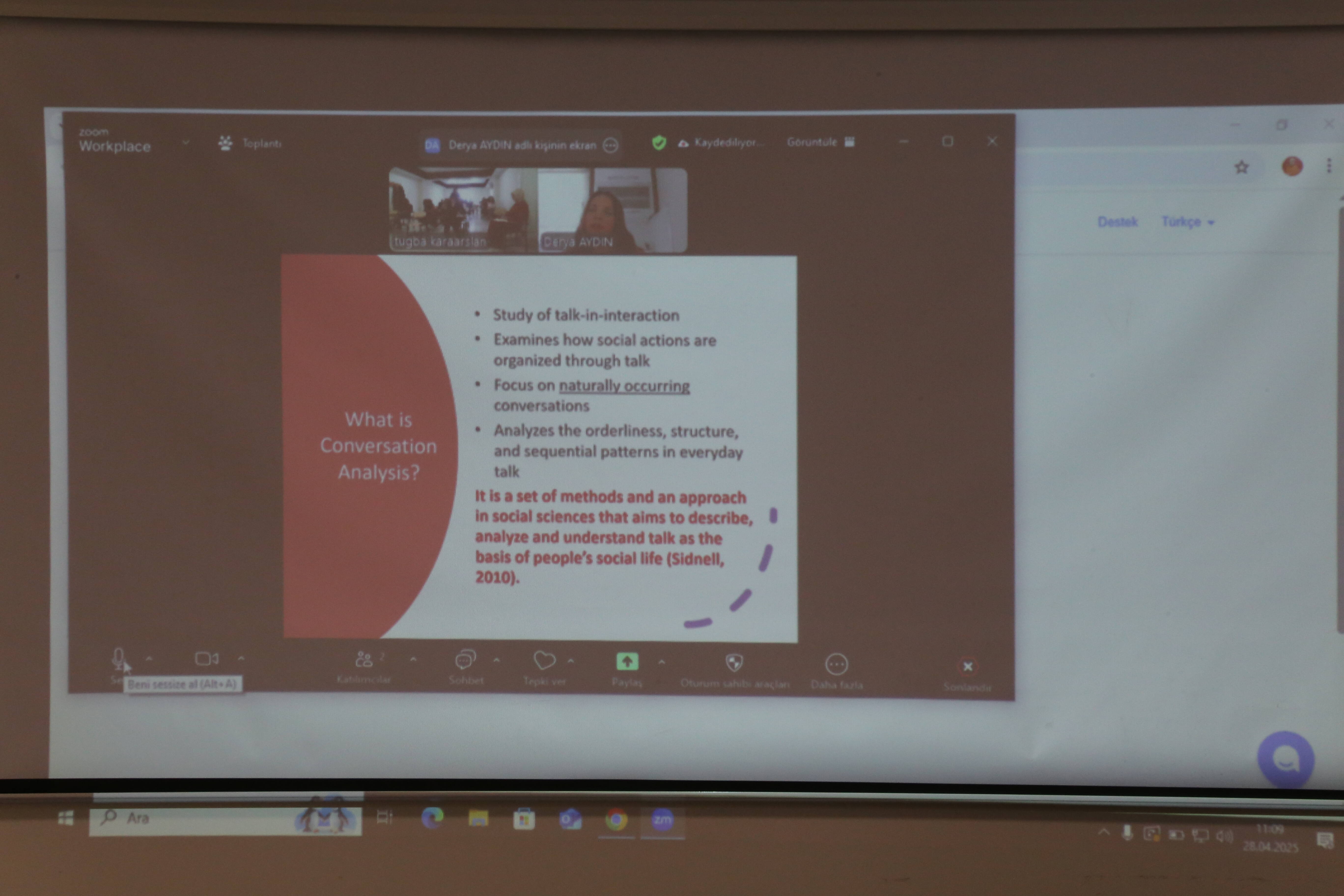 Dr. Derya Aydın’; “Introduction to Conversation Analysis” başlıklı konu ile ilgili Uygulamalı