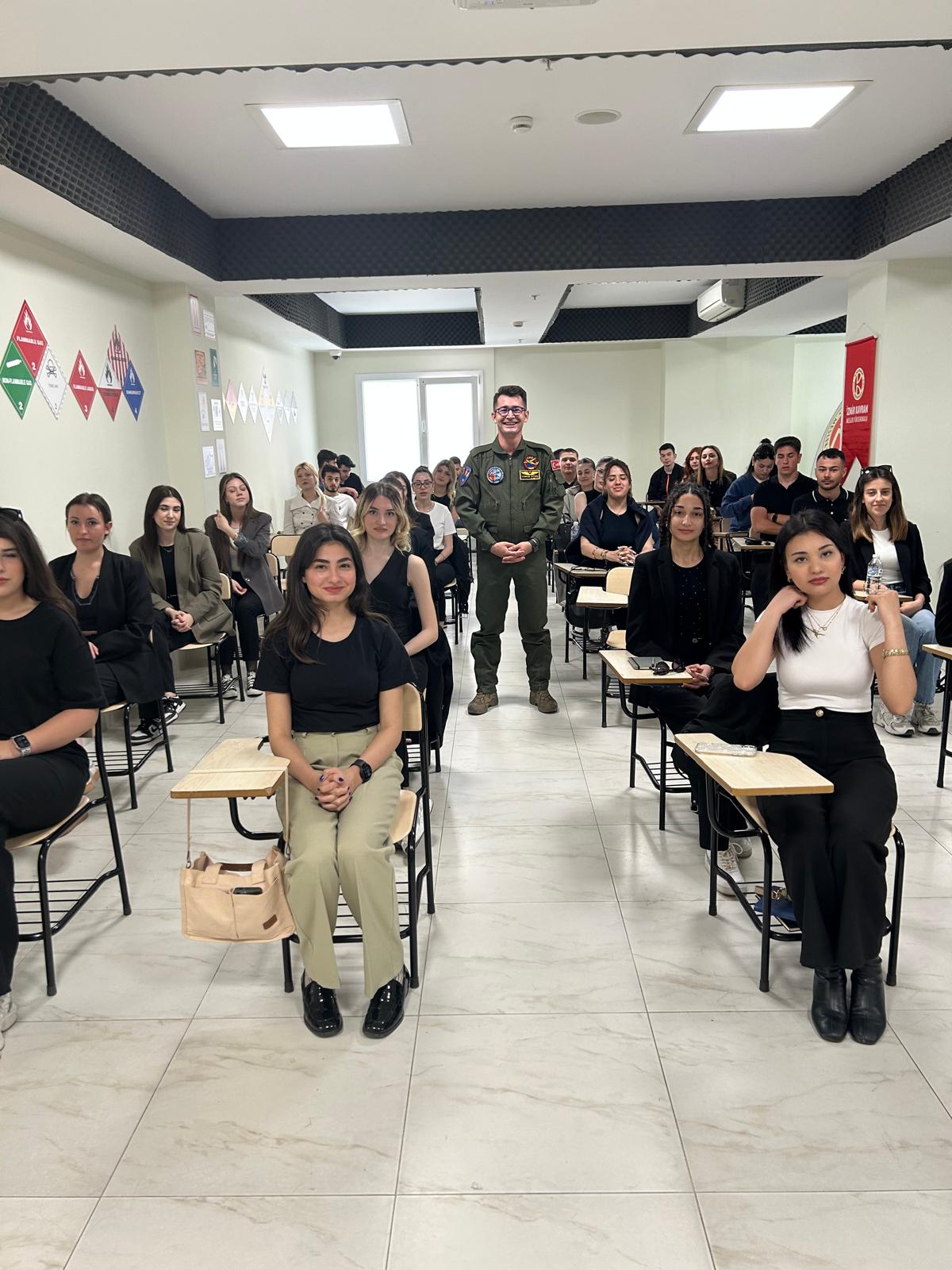 Sivil Havacılık Kabin Hizmetleri Programı 1. sınıf öğrencileri, Türkiye’de Sivil ve Genel Havacılığın ilk adımlarını, bu yönde kurulmuş olan köklü kurumları, 100. yaşına girmiş olan Türk Hava Kurumu’nu, genel havacılık kapsamında mesleki farkındalıkları ve gelişim süreçlerini hakkında bilgi sahibi oldular.