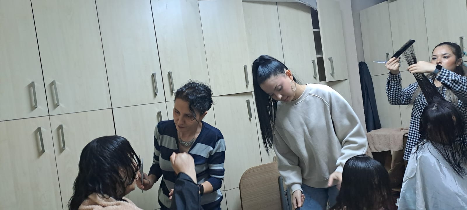 Zehra Etkin Yardım Derneği’nden destek alan 35 kız çocuğuna saç kesimi ve şekillendirme uygulamaları yapıldı. Öğrenciler, derste edindikleri teknik bilgileri sahada uygulama imkânı bulurken, çocuklarla birebir vakit geçirerek sosyal etkileşim becerilerini de geliştirdi.