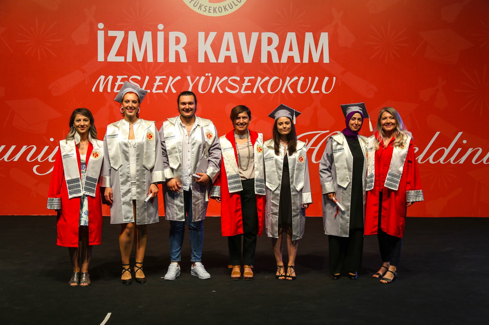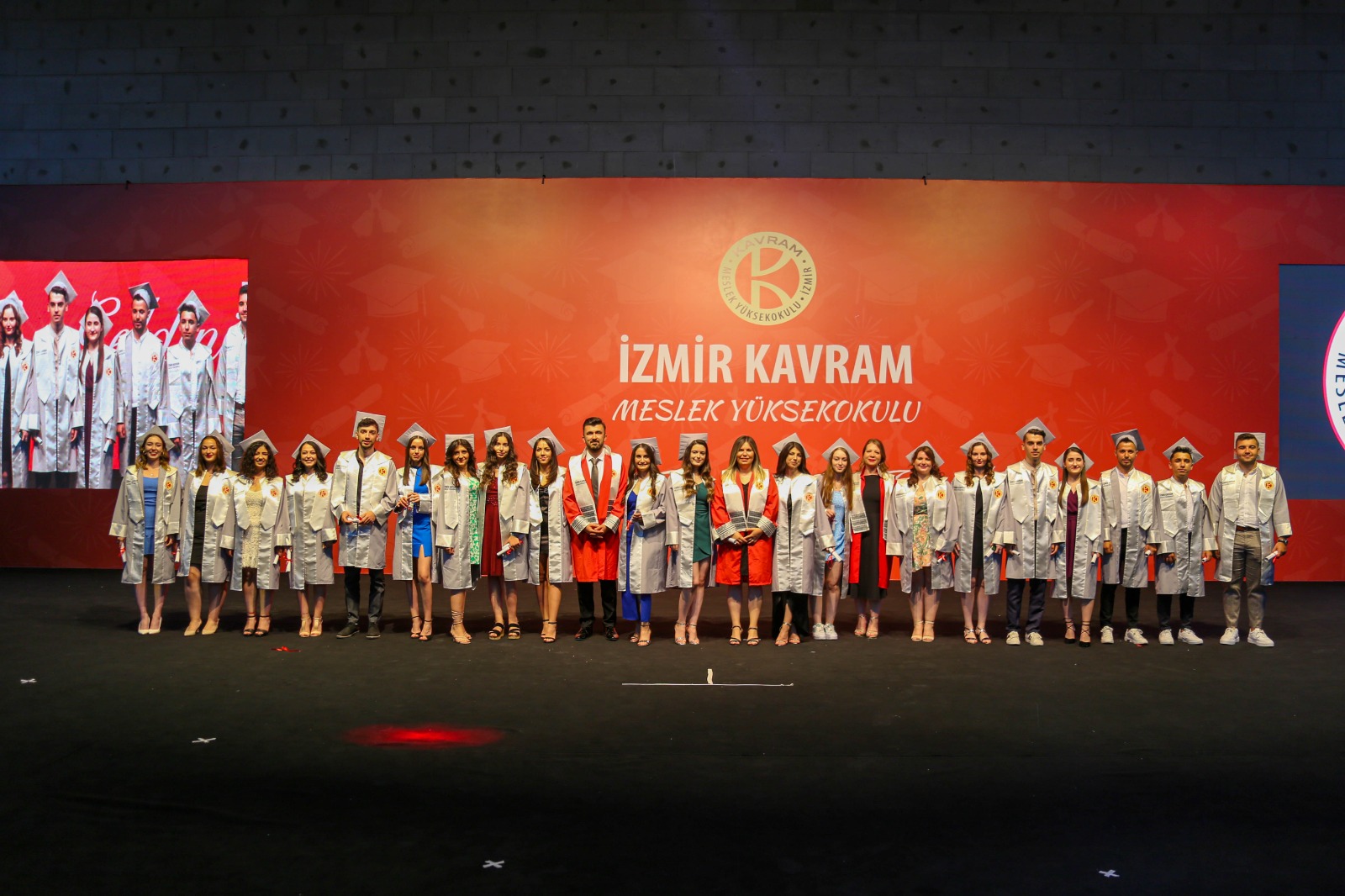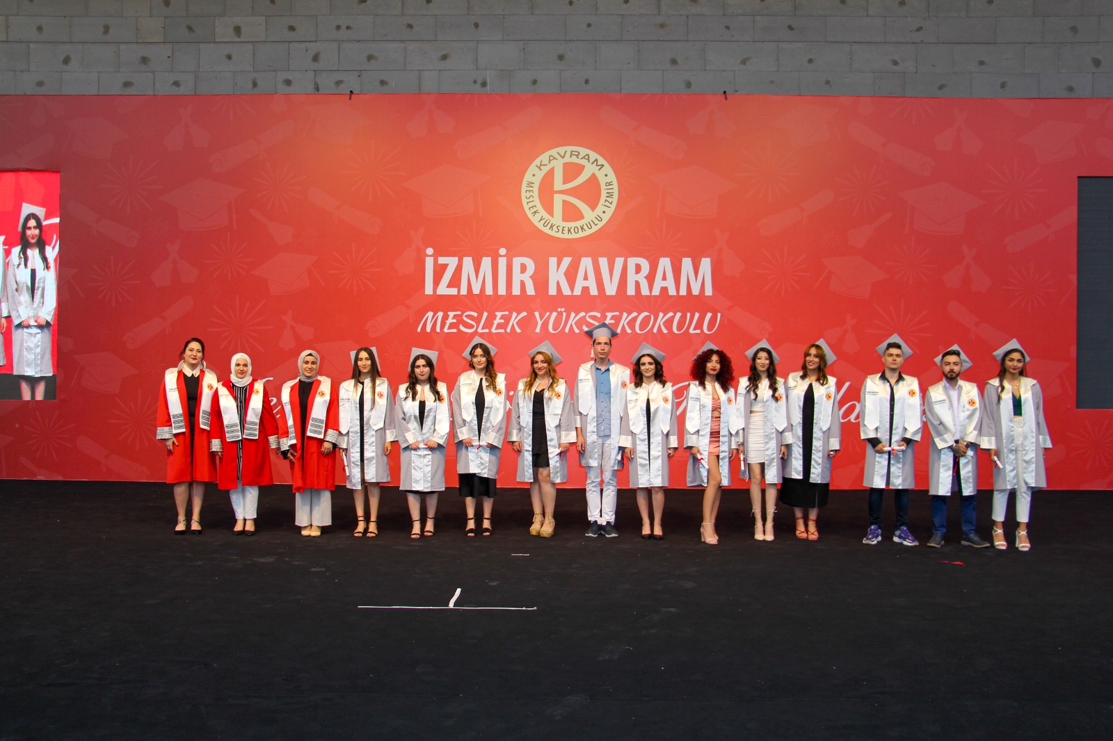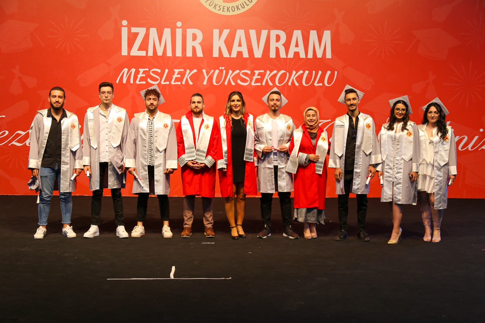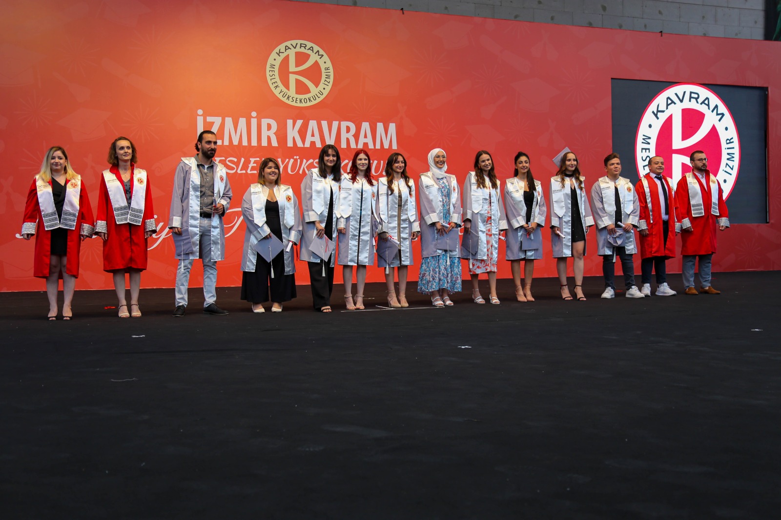 İzmir Kavram Meslek Yüksekokulu mezuniyet töreni Aşık Veysel Amfi Tiyatro'da kutlandı. Programlar halinde sahneye çıkan gençler diplomalarını aldı. Mezuniyet programı, mezun öğrencilerin sahneye çıkması ve kep fırlatması ile sona erdi. Törene, İKMYO Mütevelli Heyeti Başkanı Dr. Erkan Çelik, İKMYO Müdürü Prof. Derman Küçükaltan, İzmir Vali Yardımcısı Fatih Kızıltoprak, Kaymakamı Gökhan Görgülüarslan,akademisyenler ve veliler katıldı. Törende konuşan Dr. Erkan Çelik, bir yılda 30'a yakın mesleki iş birliğine imza attıklarını hatırlatarak, meslek yüksekokulları için iş birliklerinin önemine vurgu yaptı.