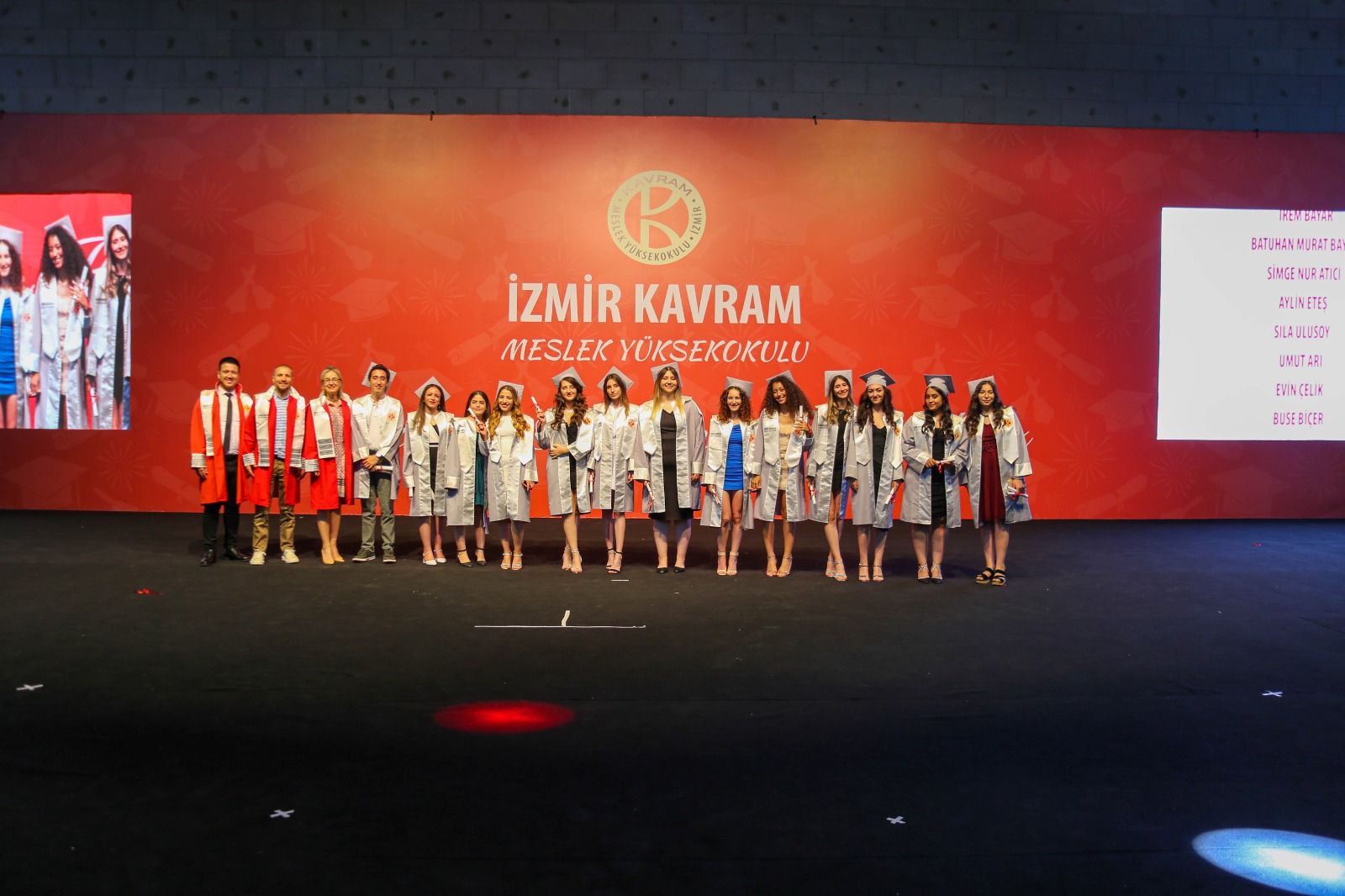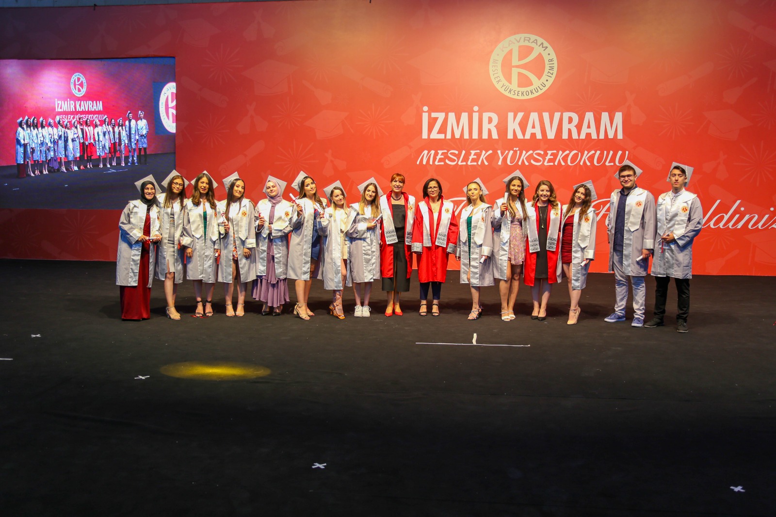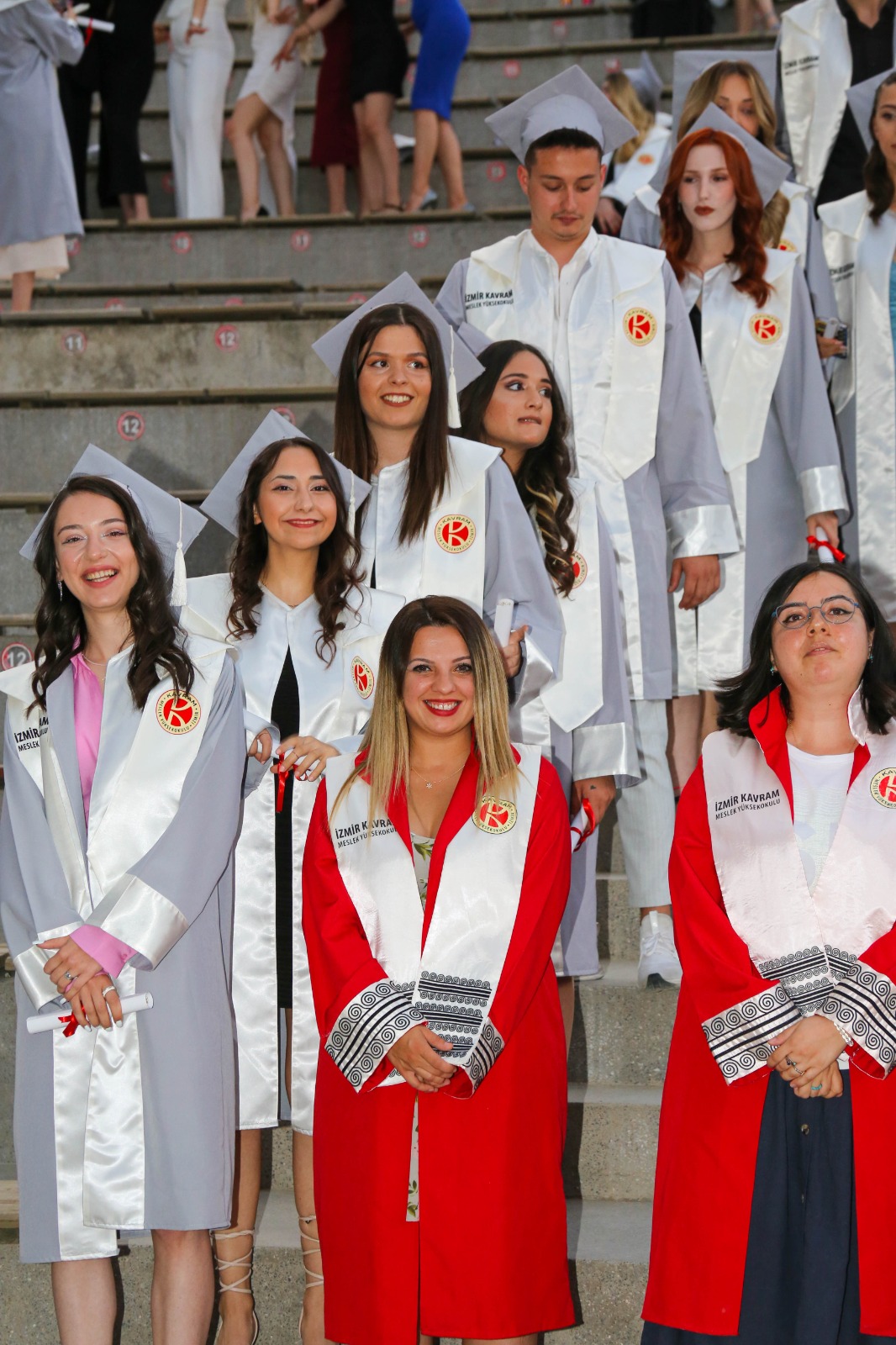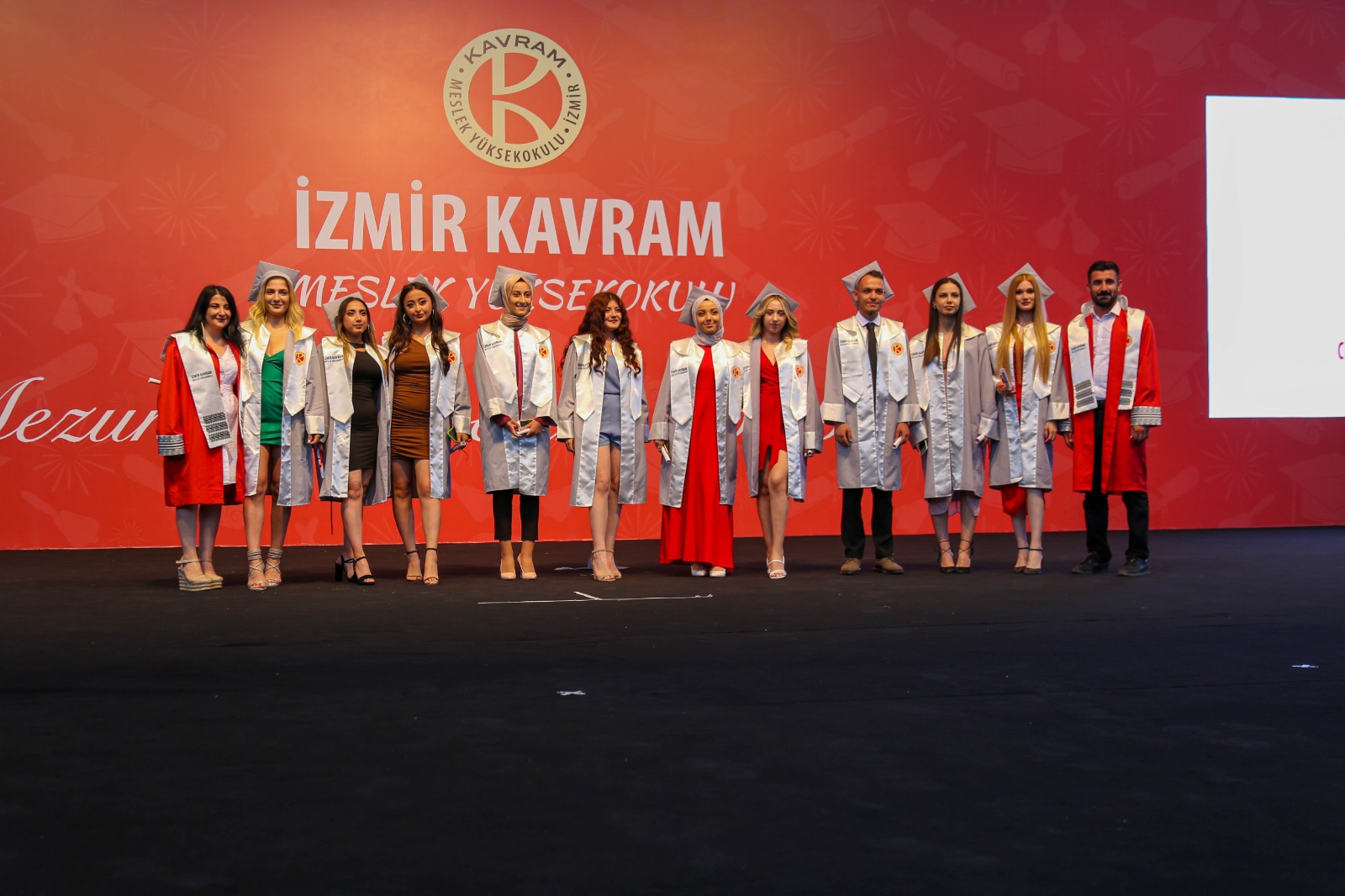 İzmir Kavram Meslek Yüksekokulu mezuniyet töreni Aşık Veysel Amfi Tiyatro'da kutlandı. Programlar halinde sahneye çıkan gençler diplomalarını aldı. Mezuniyet programı, mezun öğrencilerin sahneye çıkması ve kep fırlatması ile sona erdi. Törene, İKMYO Mütevelli Heyeti Başkanı Dr. Erkan Çelik, İKMYO Müdürü Prof. Derman Küçükaltan, İzmir Vali Yardımcısı Fatih Kızıltoprak, Kaymakamı Gökhan Görgülüarslan,akademisyenler ve veliler katıldı. Törende konuşan Dr. Erkan Çelik, bir yılda 30'a yakın mesleki iş birliğine imza attıklarını hatırlatarak, meslek yüksekokulları için iş birliklerinin önemine vurgu yaptı.