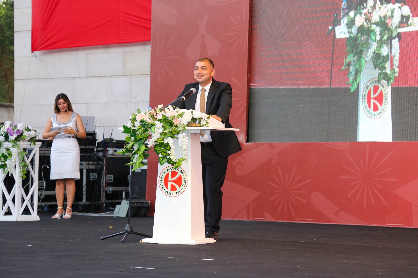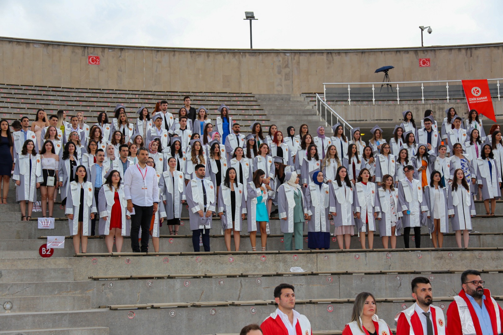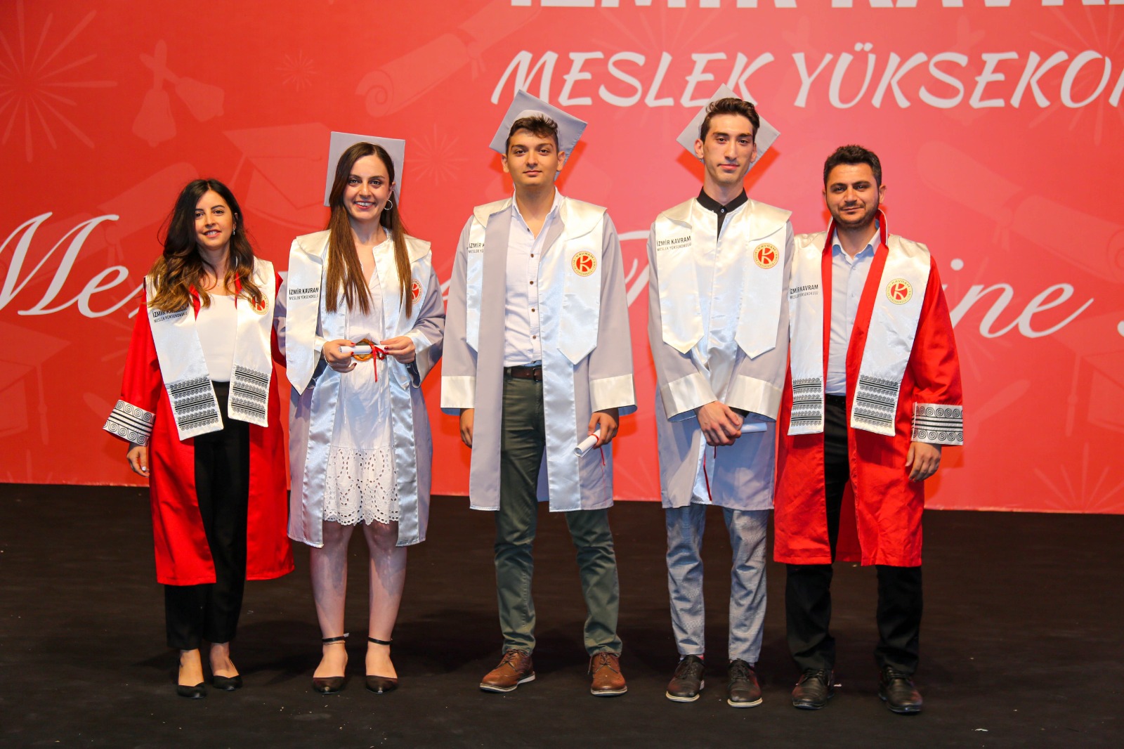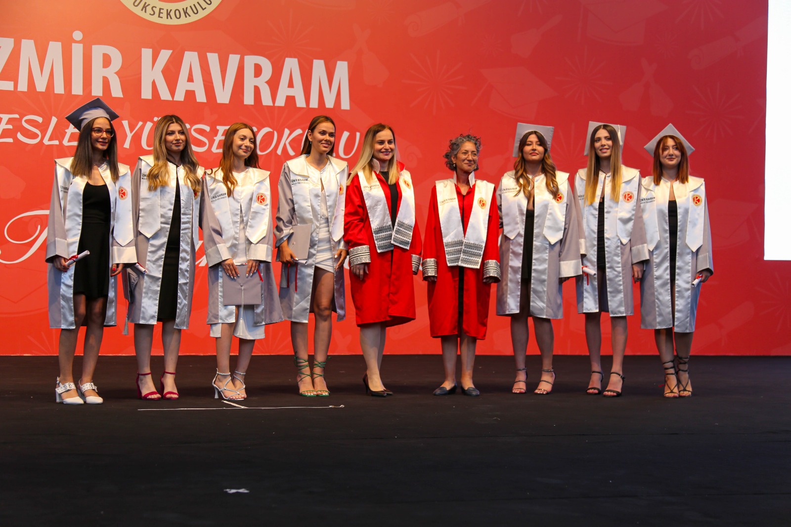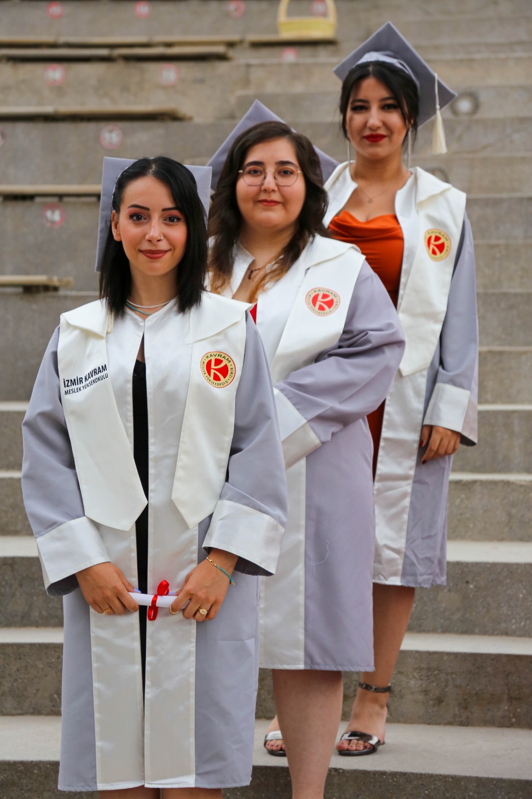 İzmir Kavram Meslek Yüksekokulu mezuniyet töreni Aşık Veysel Amfi Tiyatro'da kutlandı. Programlar halinde sahneye çıkan gençler diplomalarını aldı. Mezuniyet programı, mezun öğrencilerin sahneye çıkması ve kep fırlatması ile sona erdi. Törene, İKMYO Mütevelli Heyeti Başkanı Dr. Erkan Çelik, İKMYO Müdürü Prof. Derman Küçükaltan, İzmir Vali Yardımcısı Fatih Kızıltoprak, Kaymakamı Gökhan Görgülüarslan,akademisyenler ve veliler katıldı. Törende konuşan Dr. Erkan Çelik, bir yılda 30'a yakın mesleki iş birliğine imza attıklarını hatırlatarak, meslek yüksekokulları için iş birliklerinin önemine vurgu yaptı.