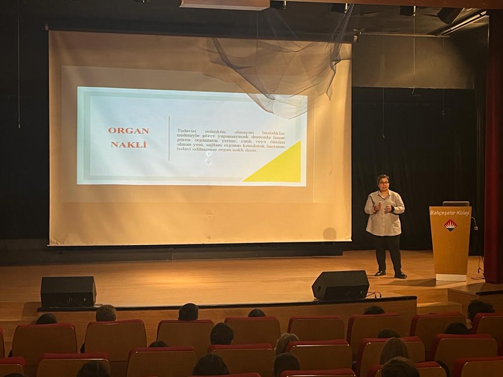 İzmir Kavram Meslek Yüksekokulu Tıbbi Hizmetler ve Teknikler Bölümü Anestezi Programı öğretim görevlisi Öğr. Gör. Zeynep KILIÇ, “03-09 Kasım Organ Bağışı Haftası” kapsamında 04 Kasım 2022 tarihinde Bahçeşehir Koleji Manisa Kampüsü’nde konuşmacı olarak katılım gösterdi. Oturuma kurum personeli ve öğrenciler katıldı. Öğretim Görevlisi Zeynep KILIÇ konuşması sırasında; organ bağışı, organ bağışçısı olma süreci, bağışçı – donör uyumunun sağlanmasında yapılan işlemler, TÜRKÖK kapsamında kök hücre bağışı, kök hücre bağışçısı olma süreci hakkında bilgilendirme sunumu yaptı. Sunum sırasında ve sonrasında dinleyicilerin soruları yanıtlandı.