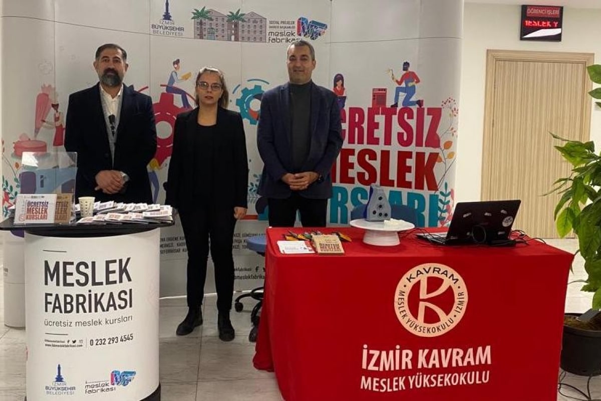 İzmir Büyükşehir Belediyesi bünyesinde faaliyet gösteren Meslek Fabrikası ile İzmir Kavram Meslek Yüksekokulu (İKMYO) arasında imzalanan, kadınları ve gençleri meslek sahibi yapacak eğitim iş birliği protokolü sonrası ilk buluşma gerçekleşti. Meslek Fabrikası’nın öğrencilerin kariyerlerine sağlayacakları katkılar ile staj ve istihdama ilişkin destekleyici bilgiler paylaşıldı.