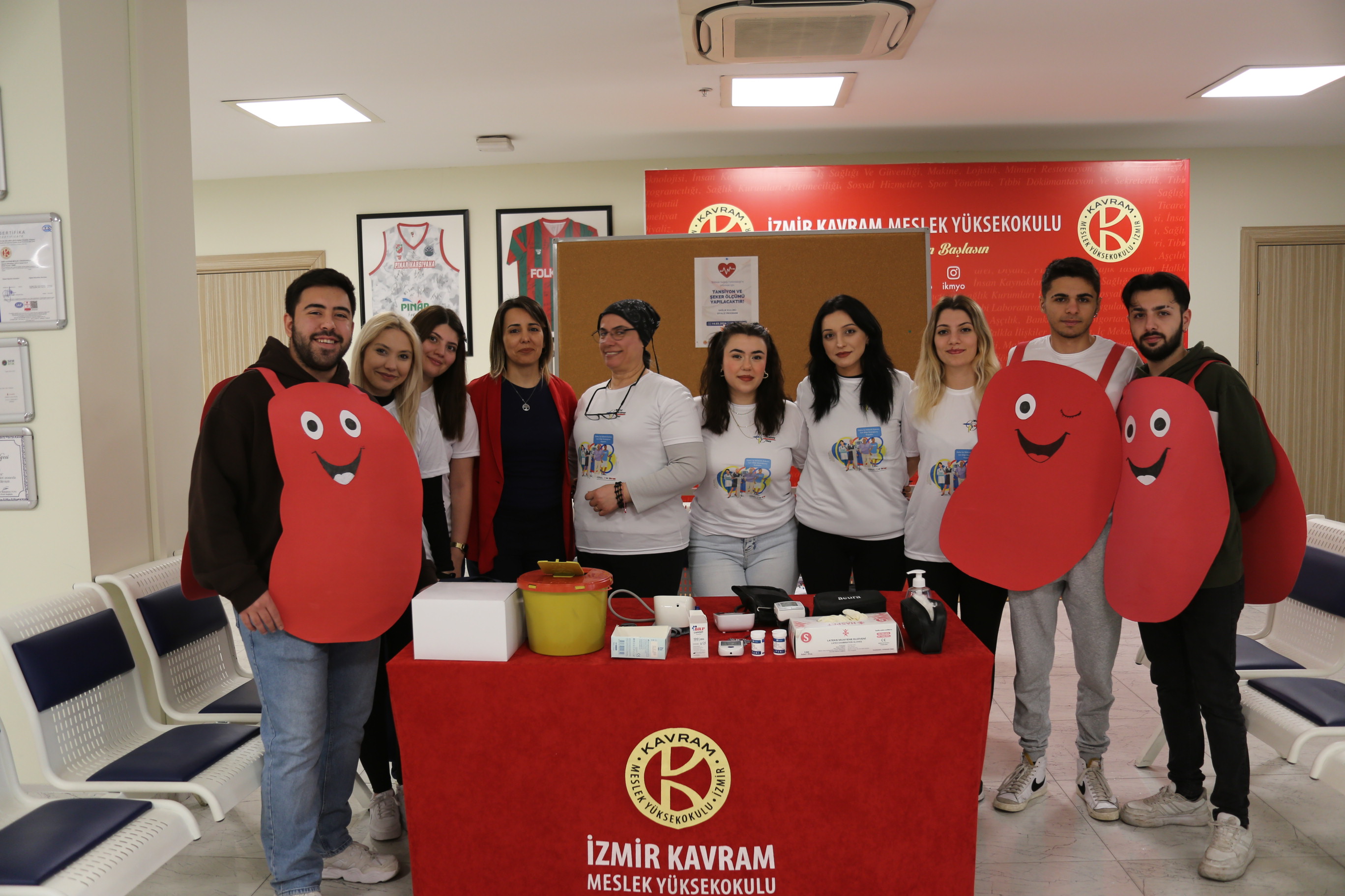 Her yıl mart ayının ikinci perşembe günü tüm dünya ve ülkemizde “Dünya Böbrek Günü” olarak kutlanmaktadır. Gün kapsamında böbrek sağlığının önemi konusuna dikkat çekmek için farkındalığı artırmaya yönelik çeşitli etkinlikler planlandı. Yüksekokulumuz Sağlık Kulübü ve Diyaliz Programı öğrencileri, Dünya Böbrek Günü’nde böbrek sağlığının önemine dikkat çekmek, böbrek hastalıklarında erken tanı ve tedavinin önemine vurgu yapmak, belirti bulguları anlatarak toplumsal farkındalığı artırmak amacıyla etkinlikler düzenledi. Ekinlik kapsamında öğrencilerimiz, böbrek hastalıklarının en önemli etiyolojik nedeni olan “Diyabet” ve “Hipertansiyon” farkındalığını artırmak için okulumuz fuaye alanında, Yüksekokulumuz öğrencileri, idari ve akademik personelinin kan glikoz takibi ve tansiyon ölçümünü gerçekleştirdi. Ayrıca öğrenciler tarafından, böbrek sağlığı için nelere dikkat edilmesi gerektiğine yönelik bilgilendirmeler yapıldı. Etkinlik kapsamında açlık kan şekerinin yüksek seyreden ve bu durumun farkında olmadığı saptanan bir akademik personel ayrıntılı inceleme adına İç Hastalıkları- Endokrinoloji ve Metabolizma Hastalıkları bölümüne yönlendirildi.