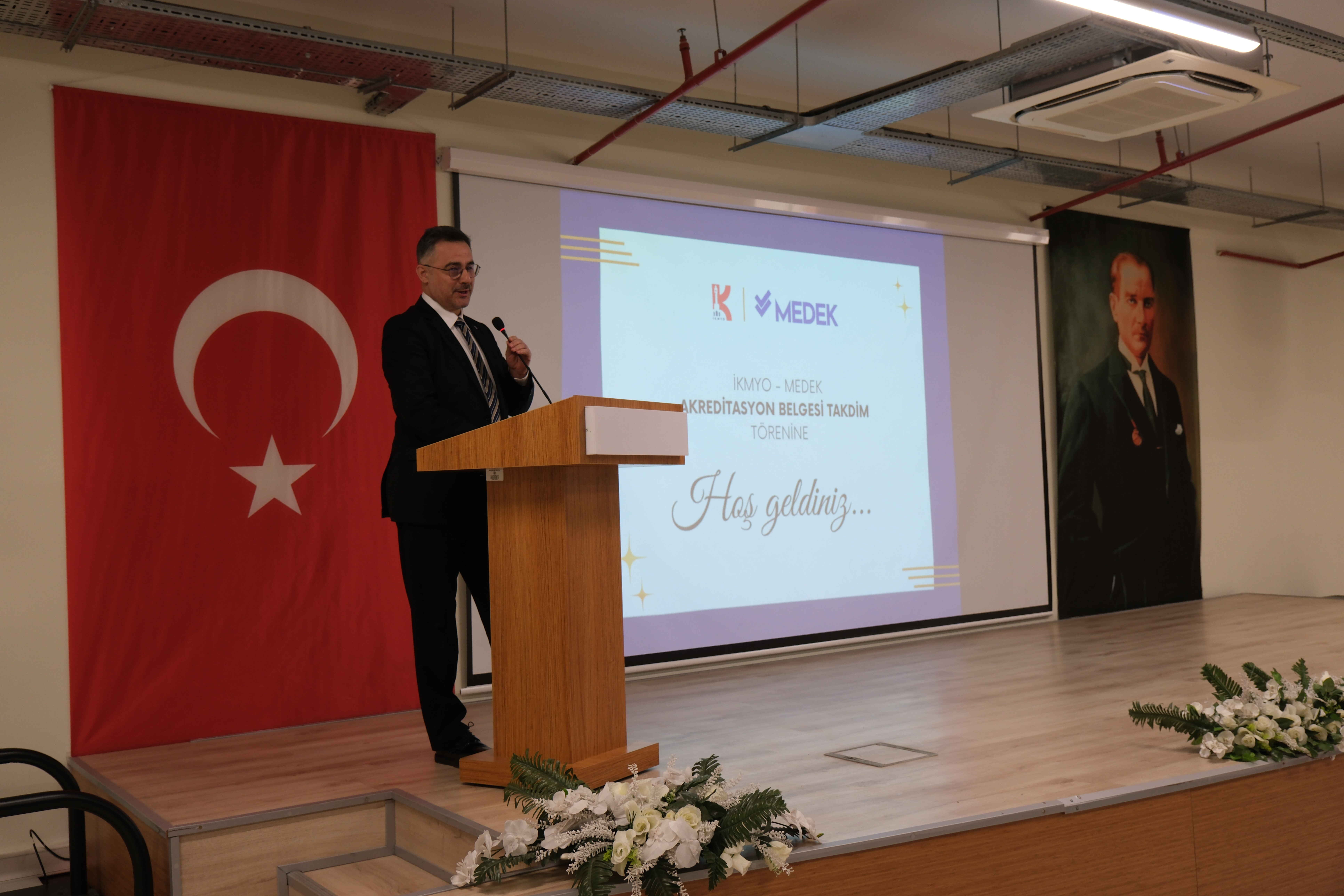 Törende ikinci konuşmayı yapan Yüksekokul Müdürümüz Prof. Dr. Derman KÜÇÜKALTAN, konuşmasında akreditasyon sürecinin başlangıcını, yürütülme aşamalarını ve elde edilen kazanımları paylaştı.