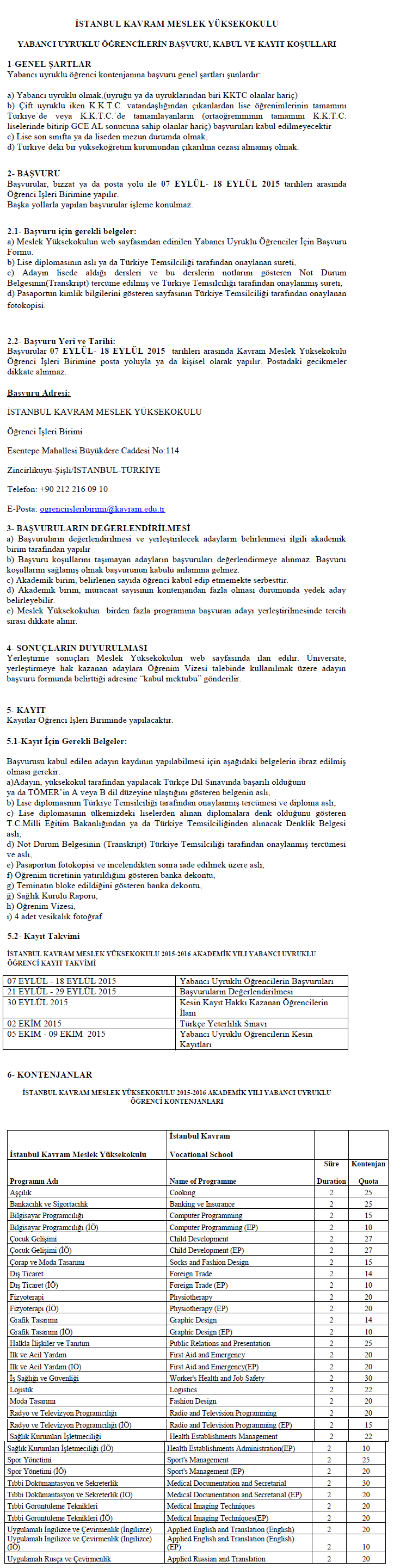 2015 - 2016 Akademik Yılı Yabancı Uyruklu Öğrenciler için Duyuru