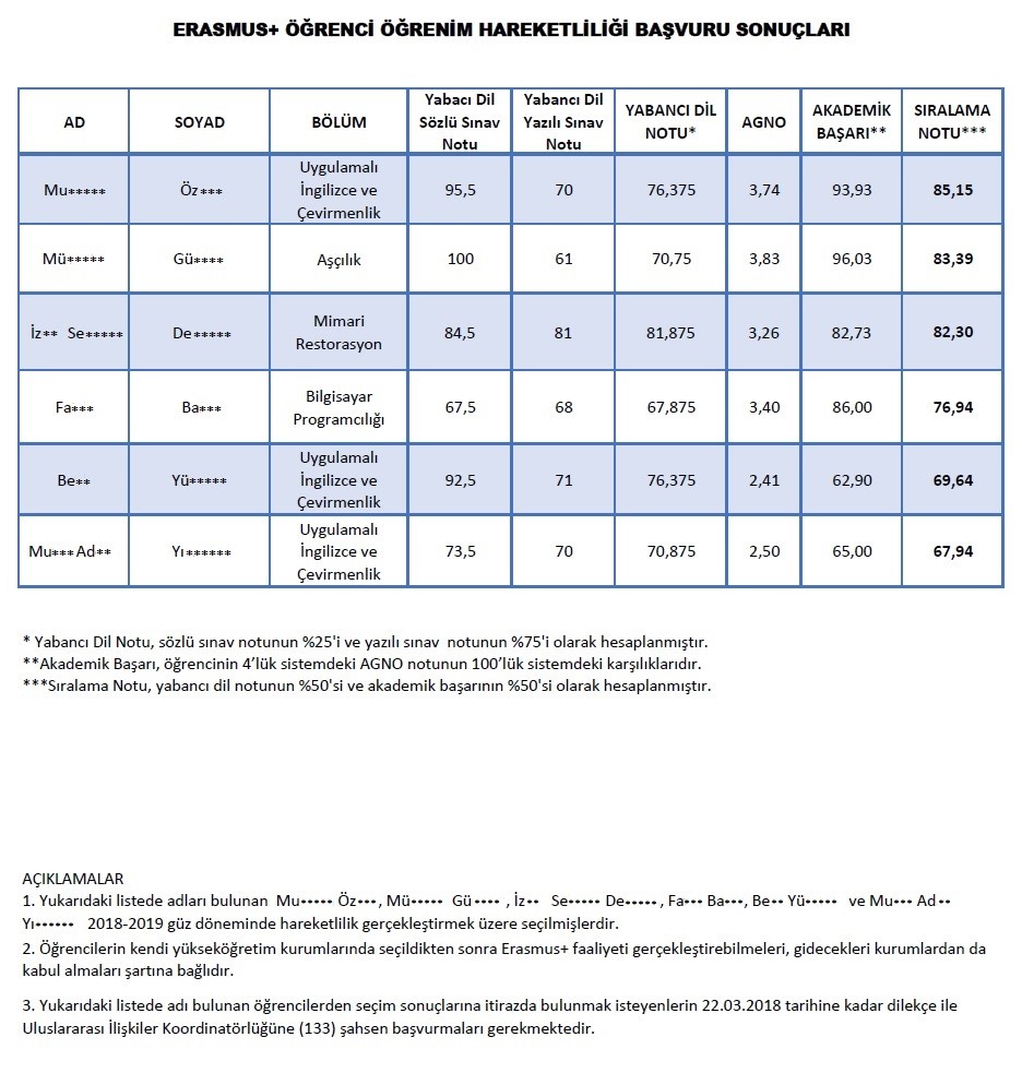 Erasmus+ Öğrenci Öğrenim Hareketliliği Başvuru Sonuçları Hk.