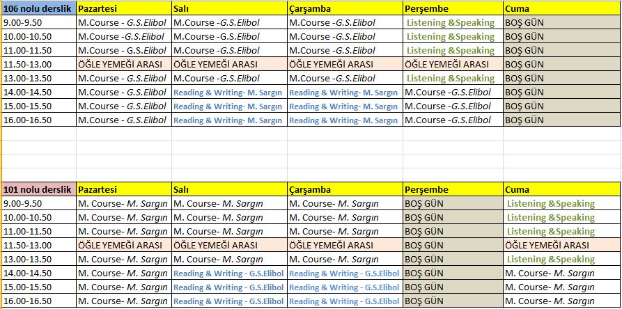 İngilizce Güncellenmiş Hazırlık Ders Programı Hk. 13.10.2014 İtibariyle Geçerli Olacaktır.