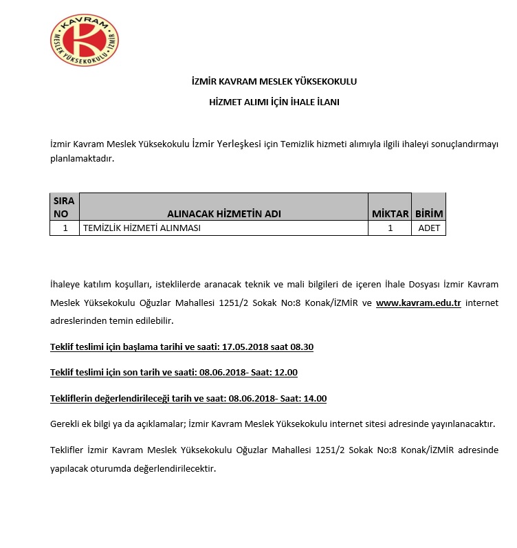 Temizlik Hizmeti Alınması İhalesi Hk. (17.05.2018)