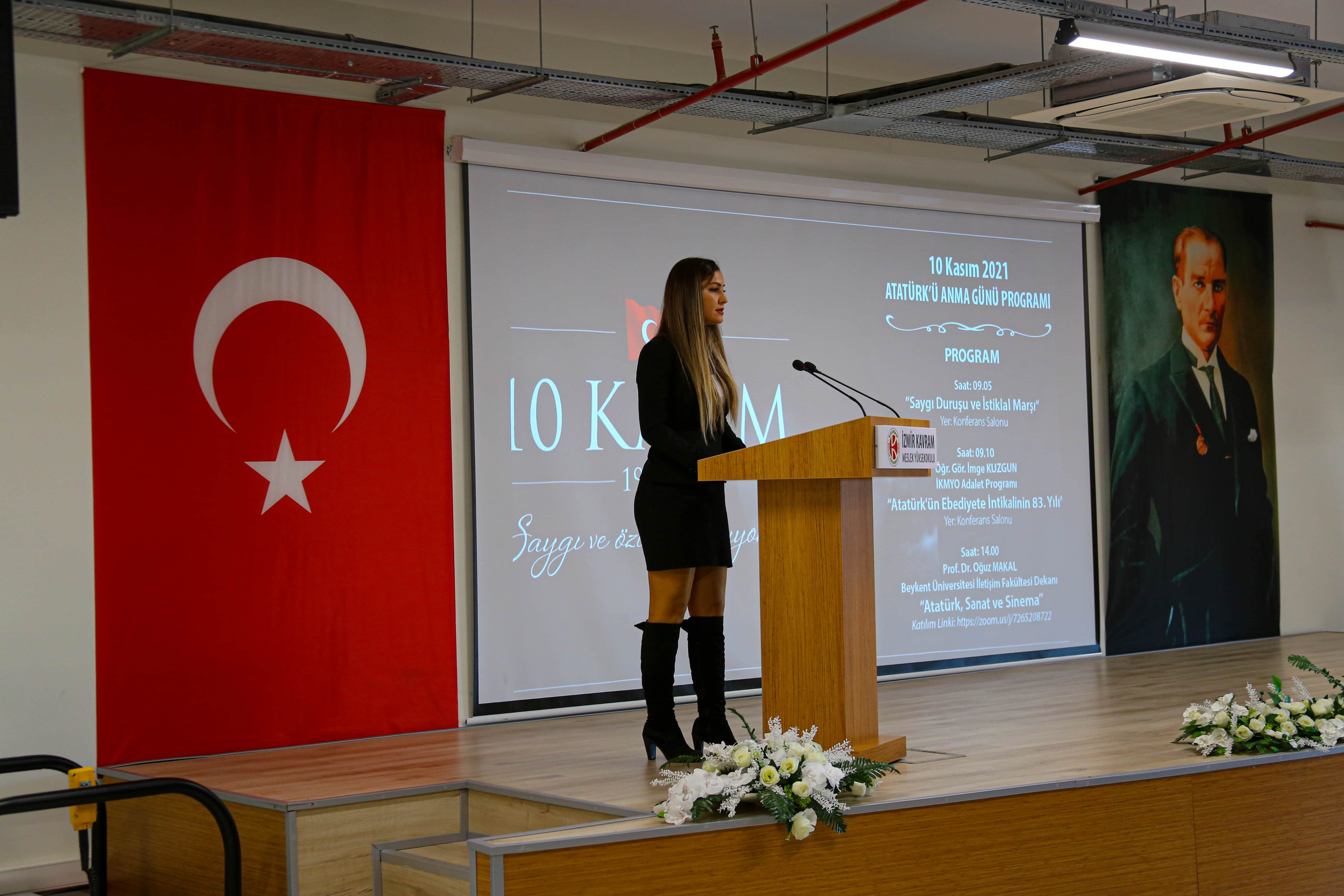 Ulu Önderimiz Gazi Mustafa Kemal Atatürk’ün aramızdan ayrılışının 83. yıldönümü İzmir Kavram Meslek Yüksekokulu konferans salonunda düzenlenen törende anıldı.