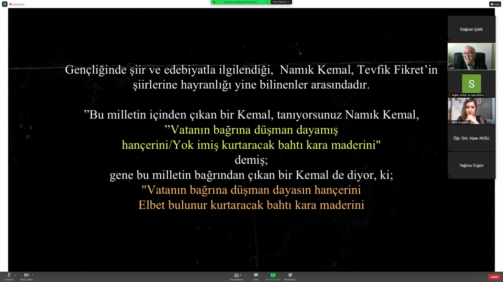 Törenimiz saat 14.00’da Beykent Üniversitesi İletişim Fakültesi Dekanı Sayın Prof. Dr. Oğuz Makal’ın “Atatürk, Sanat ve Sinema” Konulu konuşmasıyla çevrim içi olarak devam etti.