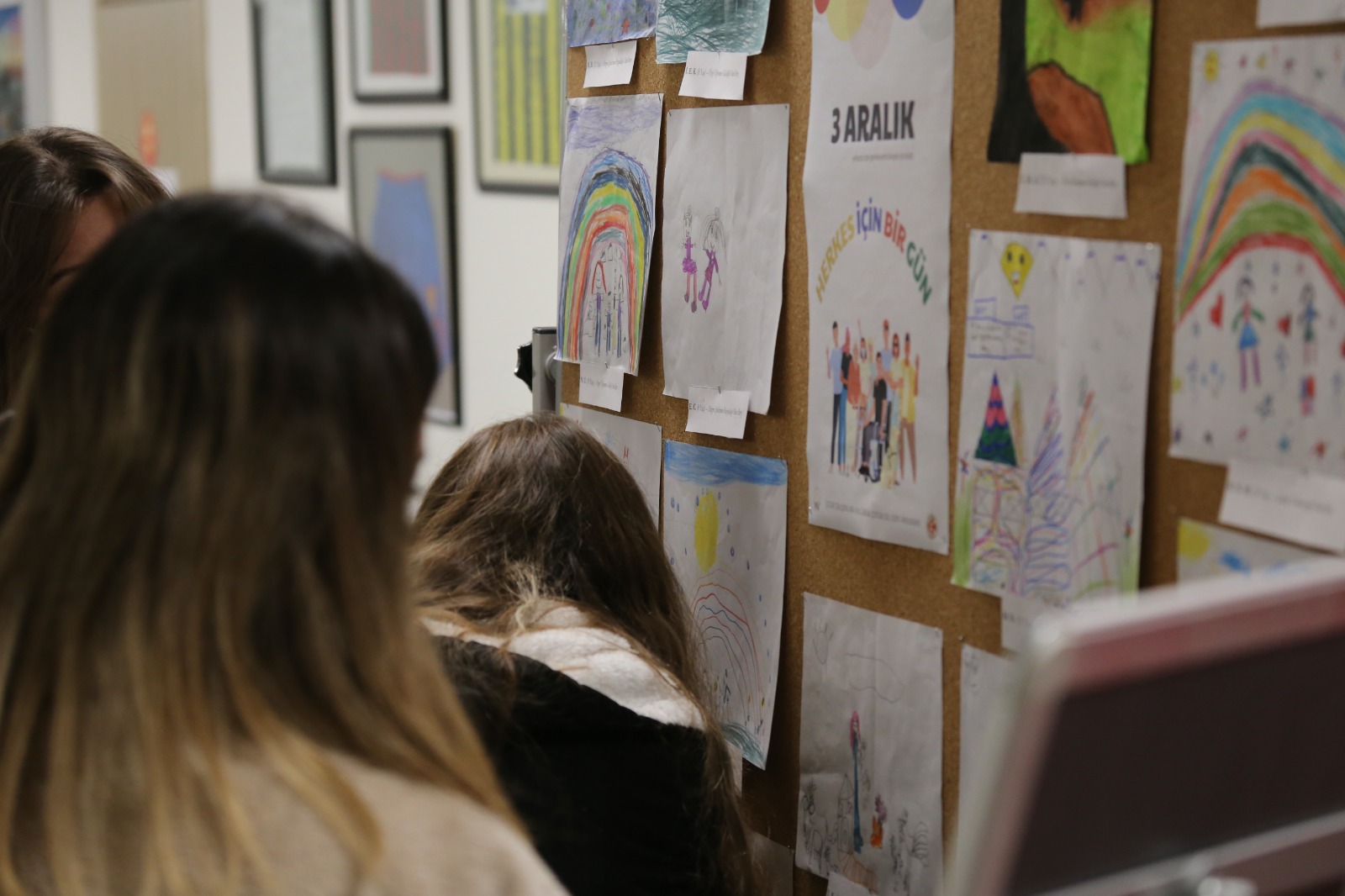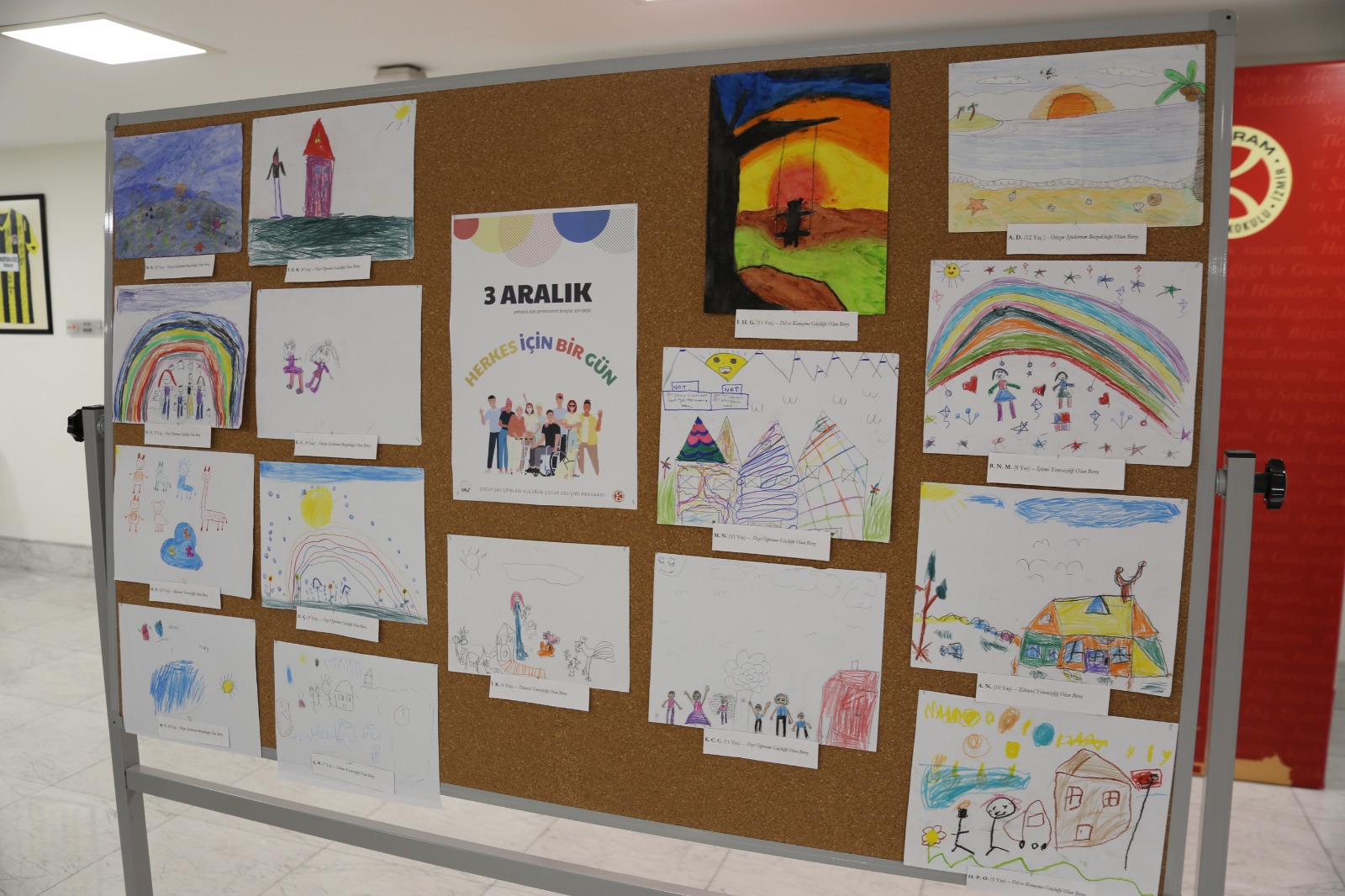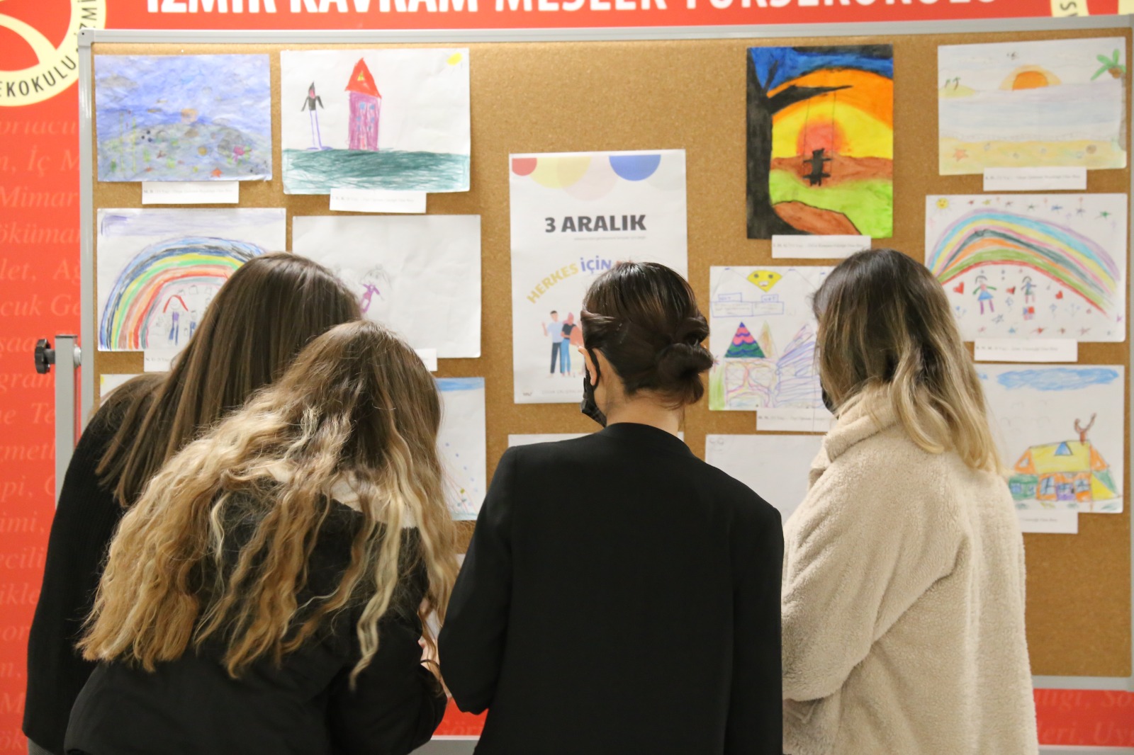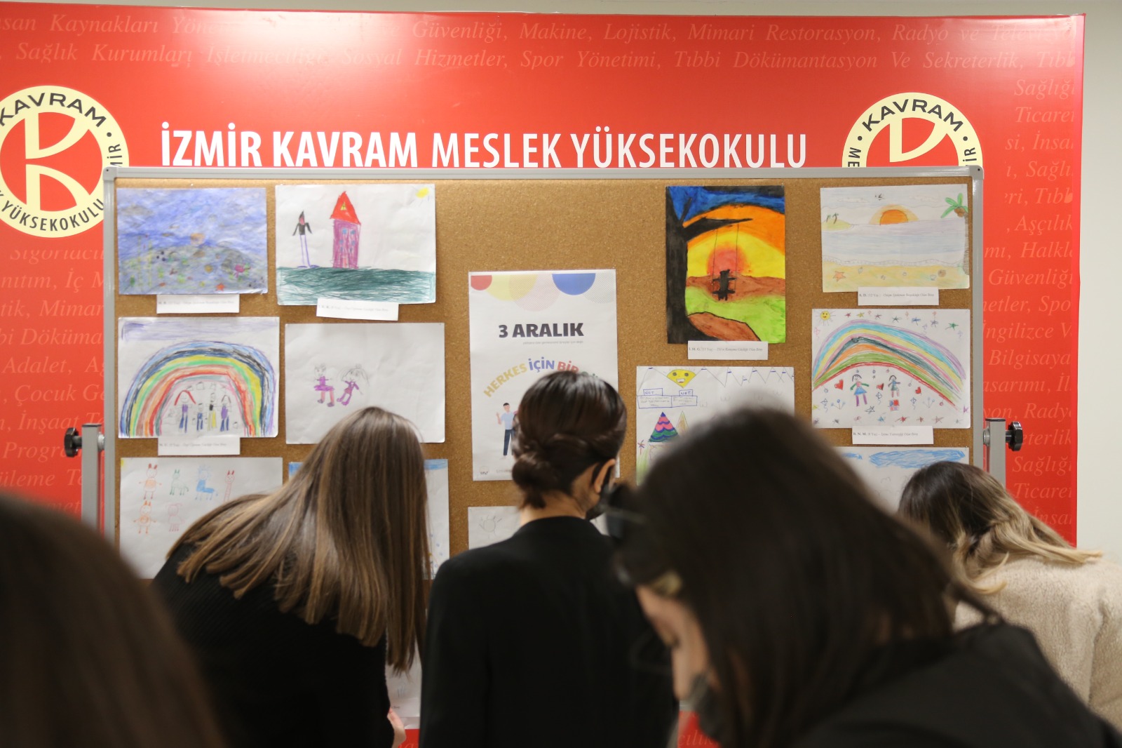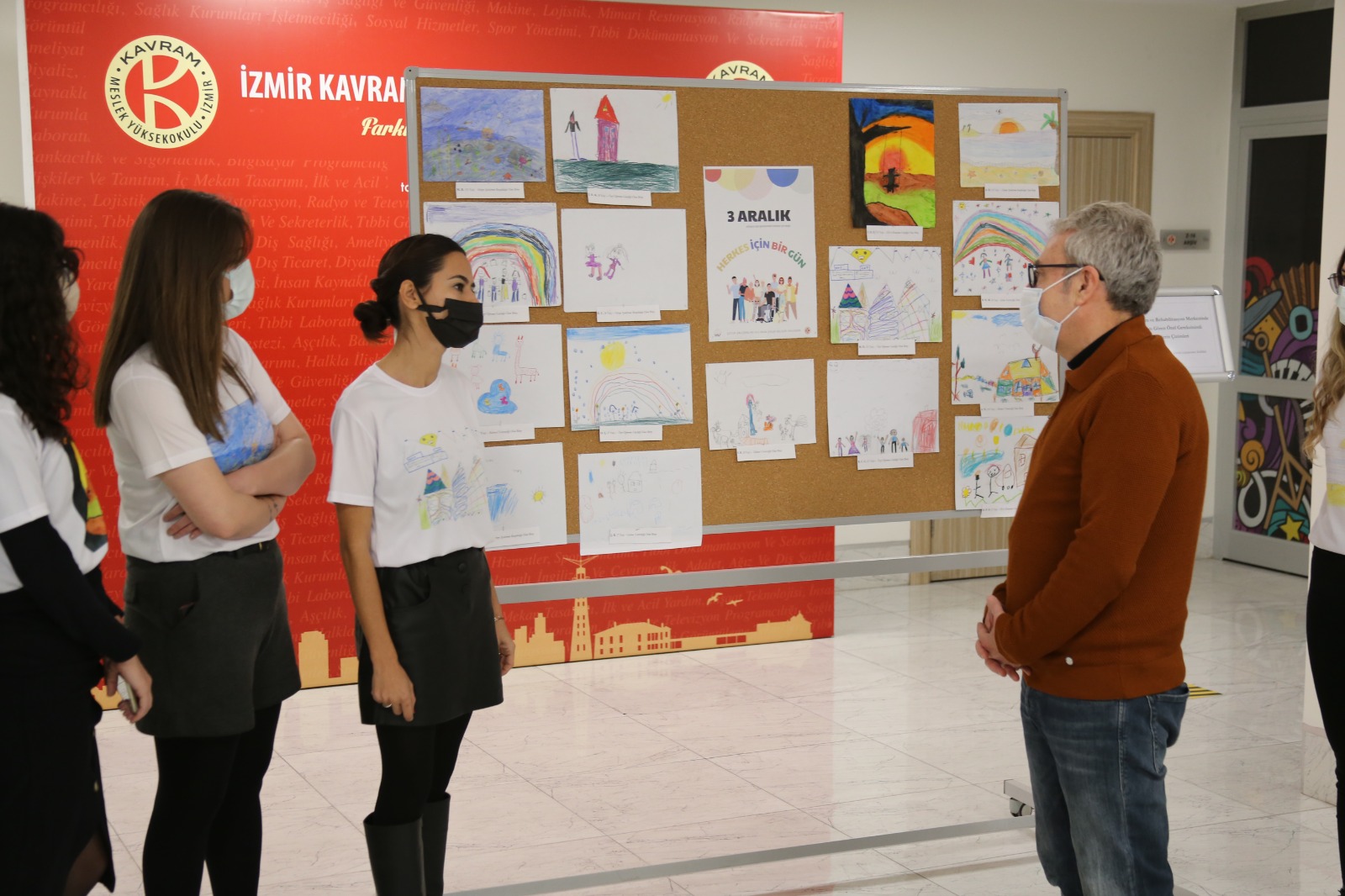 İzmir’de bulunan Özel Eğitim ve Rehabilitasyon Merkezinde eğitim gören özel gereksinimli bireylerin çizmiş oldukları resimler meslek yüksekokulumuz fuaye alanında sergilendi. Aynı zamanda özel gereksinimli bireylerin çizmiş oldukları resimlerden tişört baskısı yapıldı ve çocuk gelişimi programı öğretim görevlileri ile program öğrencileri tişörtleri giyerek farkındalık yarattılar.