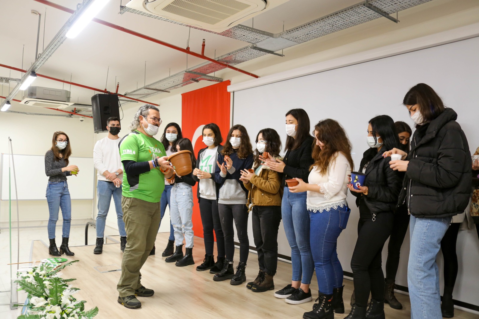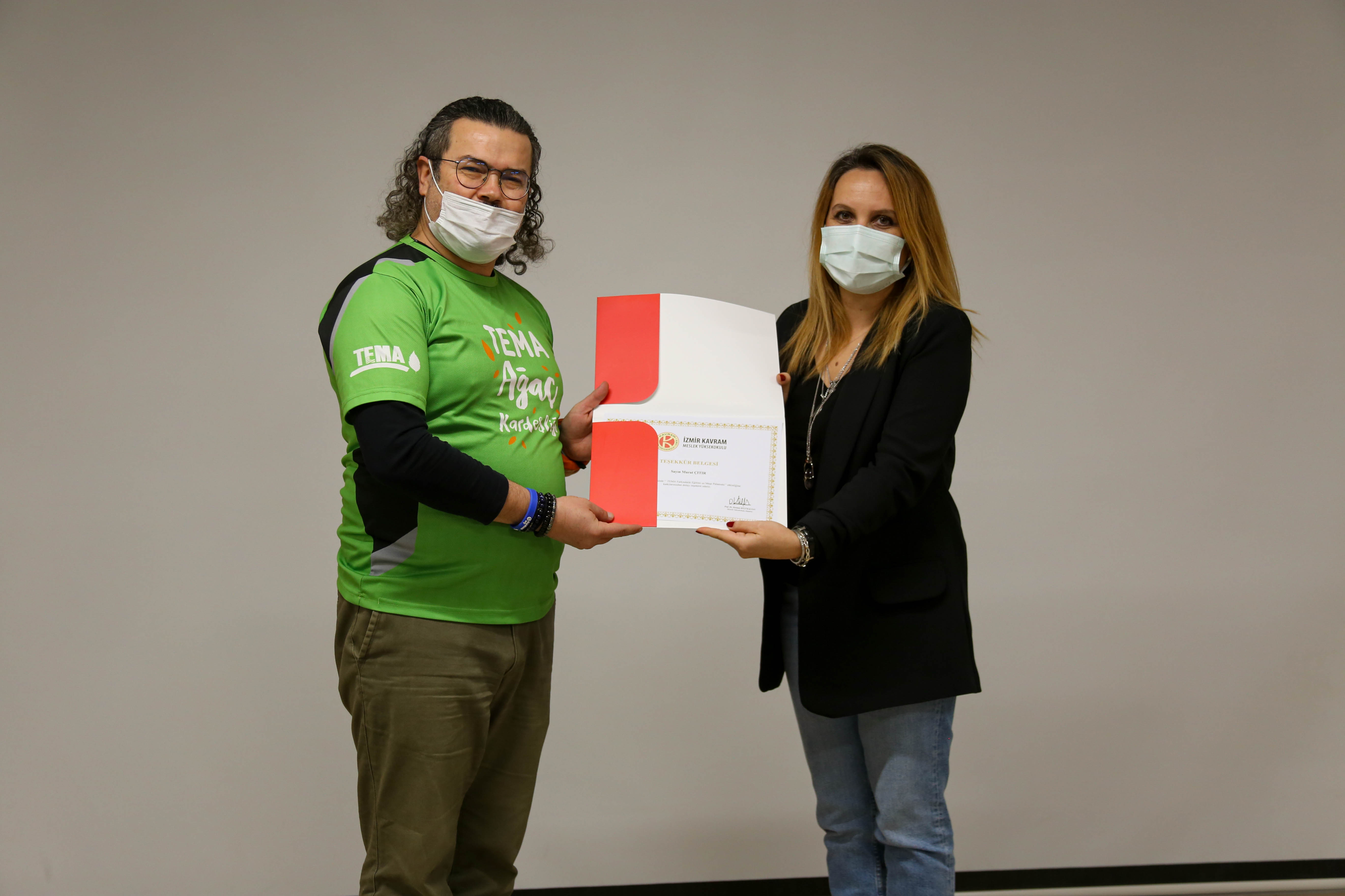 Sosyal Dayanışma ve Yardımlaşma kulübü öğrencilerimizin düzenlemiş olduğu " Tema Farkındalık Eğitimi ve Meşe Palamudu ” öğrencilerimiz ve akademik personelimizin katılımı ile gerçekleşmiştir. TEMA ilçe bölge sorumlusu Murat ÇITIR , Türkiye Erozyonla Mücadele, Ağaçlandırma ve Doğal Varlıkları Koruma Vakfı‘nın kuruluşu ve günümüze dek yapılan faaliyetleri hakkında bilgi verdi. Ayrıca TEMA Vakfı‘nın gönüllülük modeli hakkında da bilgi veren Murat Çıtır‘ın ardından ,İzmir Yüksek Teknoloji Enstitüsü, Ege Üniversitesi ve Dokuz Eylül Üniversitesi TEMA gönüllüleri öğrencilerimize okullarında kurdukları TEMA kulübünün faaliyetlerinden bahsettiler. TEMA Vakfı‘nın okulumuza ve öğrencilerimize hediye ettikleri meşe palamutları öğrencilerimizin getirdikleri toprakla buluştu. Etkinlik TEMA ilçe bölge sorumlusu Murat Çıtır‘a ve TEMA gönüllüsü öğrencilere katılım belgesi verilmesinin ardından sona ermiştir.