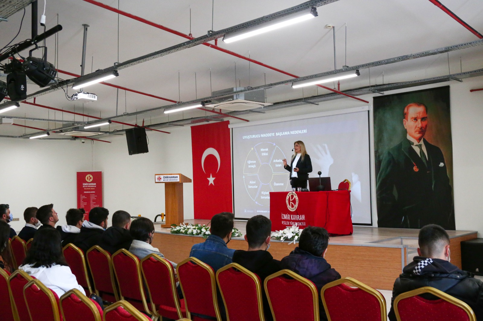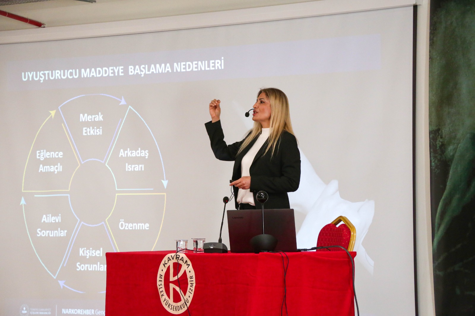 Yükseköğretim Kurulu’nun Bağımlılıkla Mücadele Eylem Planı çerçevesinde Meslek Yüksekokulu Müdürlüğümüz tarafından organize edilen ve İzmir İl Emniyet Müdürlüğü İzmir Narkotik Suçlarla Mücadele Şube Müdürlüğü tarafından gerçekleştirilen “Gençlere Yönelik Madde Bağımlılığı” konusunda öğrencilerimize yönelik farkındalık eğitimi gerçekleştirildi. Eğitim sonunda Yüksekokul Müdür Yardımcımız Sn. Öğr. Gör. Aykut AKSU, eğitimci konuğumuz Sn. Bircan BİRKAN'a teşekkür belgesi takdim etti.