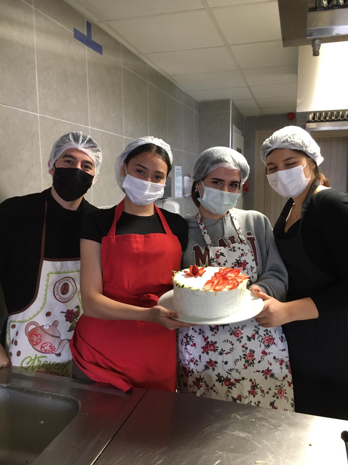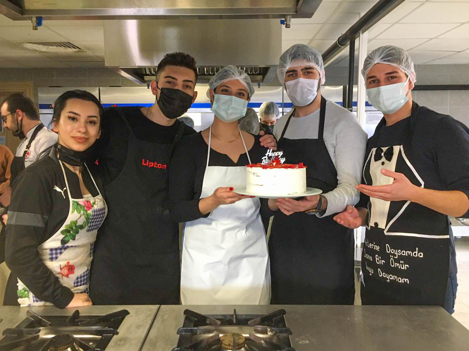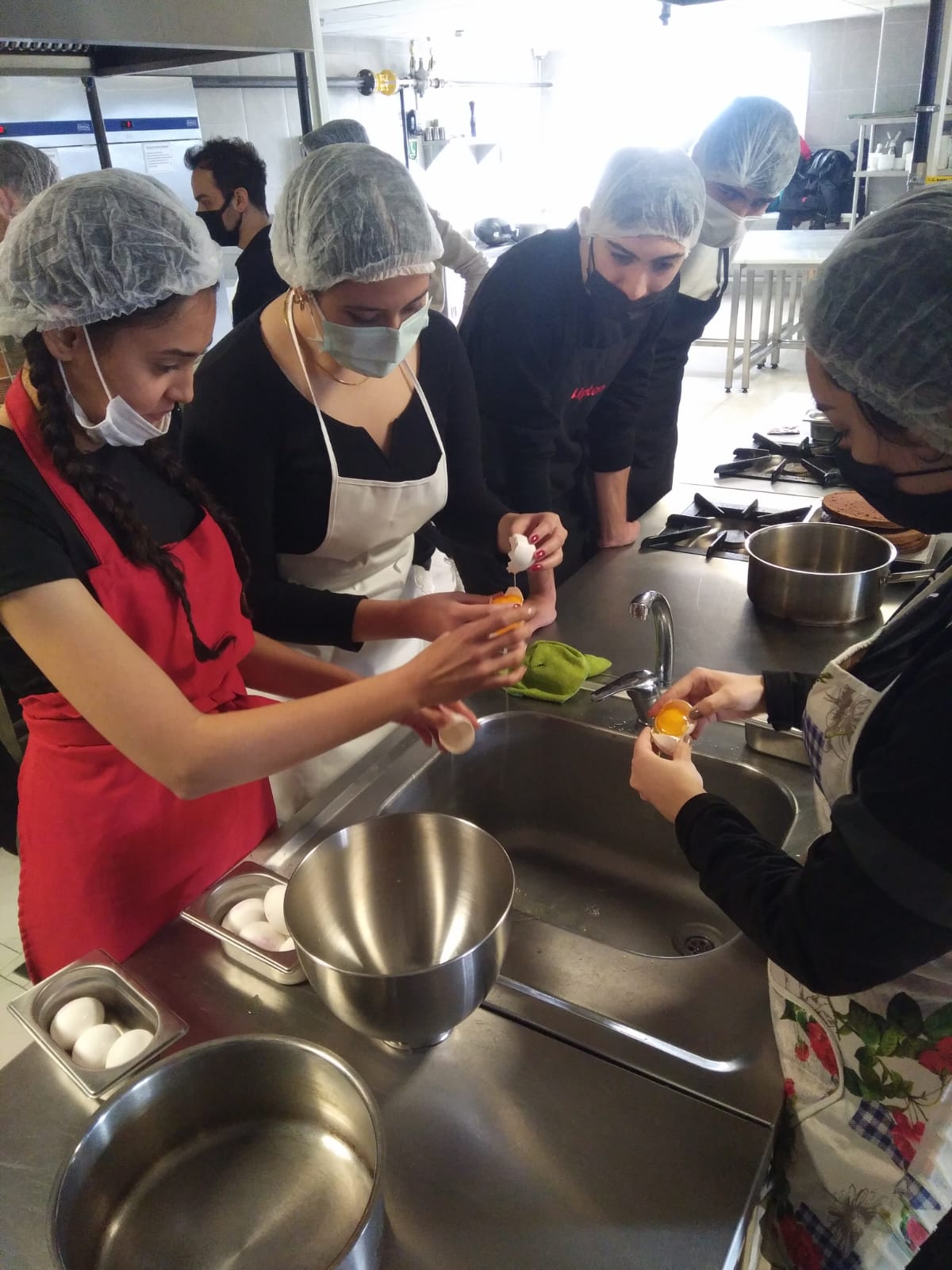 İzmir Kavram Meslek Yüksekokulu (İKMYO) Sivil Havacılık Kabin Hizmetleri Programı öğrencileri ile Yüksekokulumuz bünyesinde bulunan Aşçılık Programı Mutfak Atölyesi’nde, ‘’ Pastanı Yarat ’’ aktivitesi yapılmıştır. Öğrencilerimiz hijyen kurallarına uyarak, Aşçılık Programı Öğr. Gör. Onur ÖZDEN önderliğinde, ekiplere ayrılarak kendilerine verilen malzemelerle, pasta yapmaları istenmiştir.