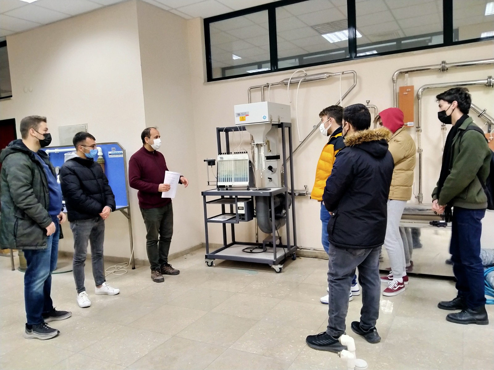 Başta "Akışkan Analiz Laboratuvarı" ve "Malzeme Laboratuvarı" olmak üzere birkaç laboratuvar, Makine Mühendisliği bölümünün Araştırma Görevlileri ile birlikte gezildi. Laboratuvarlardaki birçok deney seti, ölçüm-kontrol cihazları ve makine parkı öğrencilerimize tanıtıldı, uygulama yapıldı. Bölümün Araştırma görevlileri ayrıca halihazırdaki çalışmalarını öğrencilerimize anlattılar.