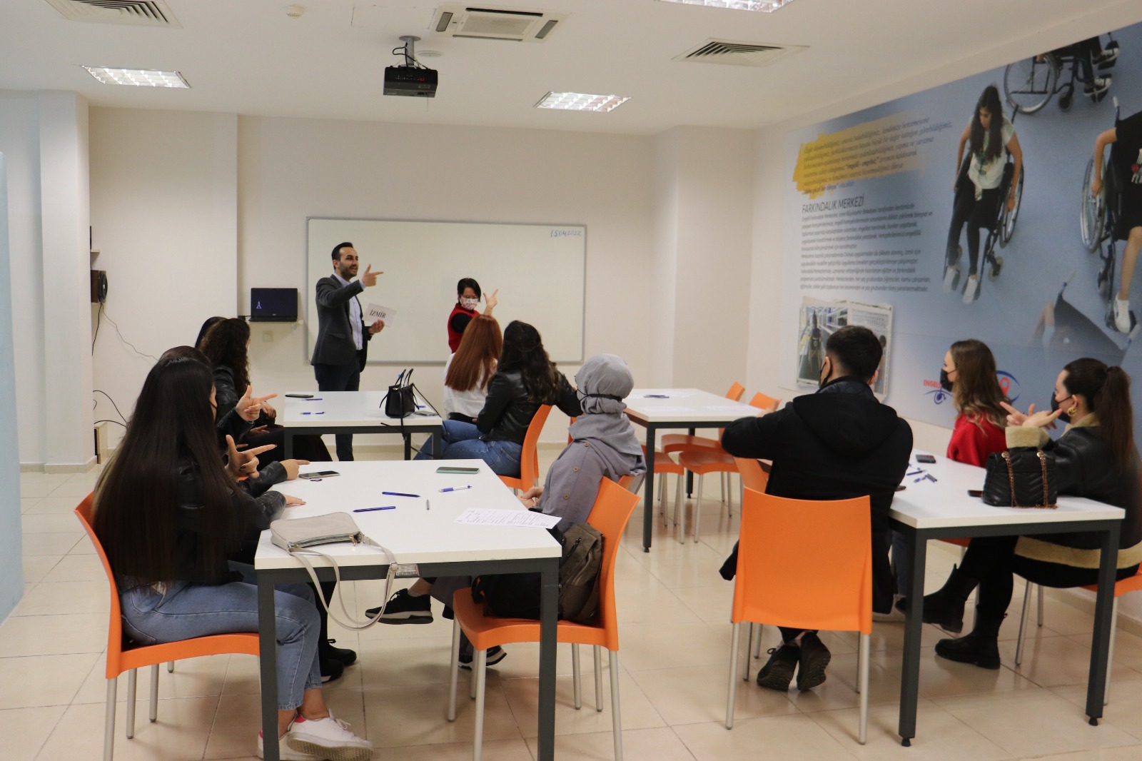 Meslek Yüksekokulumuz Sosyal Hizmetler Programı öğrencileri İzmir Büyükşehir Belediyesi’ne bağlı Örnekköy Sosyal Projeler Yerleşkesi’nde bulunan "Engelli Farkındalık Merkezi" ve “İzmir Dokunulabilir Engelsiz Modern Sanatlar Müzesi (İZDEM)” ne ziyaret gerçekleştirdi. Engellilerin toplumsal yaşam içerisinde karşılaştıkları güçlüklere ilişkin farkındalığın arttırılması amaçlanan ziyarette, öğrencilerimiz sosyal hizmetler alanının önemli bir müracaatçı grubunu oluşturan engellilerin yaşadıklarını uygulamalı olarak deneyimleme imkanı buldu. Program öğrencileri; işaret dili, duyu labirenti, tekerlekli sandalye parkuru, özel öğrenme güçlüğü alanı, karanlık ev (görme engelliler için) ve ruh sağlığı alanı gibi uygulamalı alanlarda eğitimlere katıldı, uygulama yaptı ve İZDEM’de dünyaca ünlü pek çok sanatçının dokunulabilir ve sesli betimlemeli olarak yer alan eserlerini inceleme imkanı buldu.
