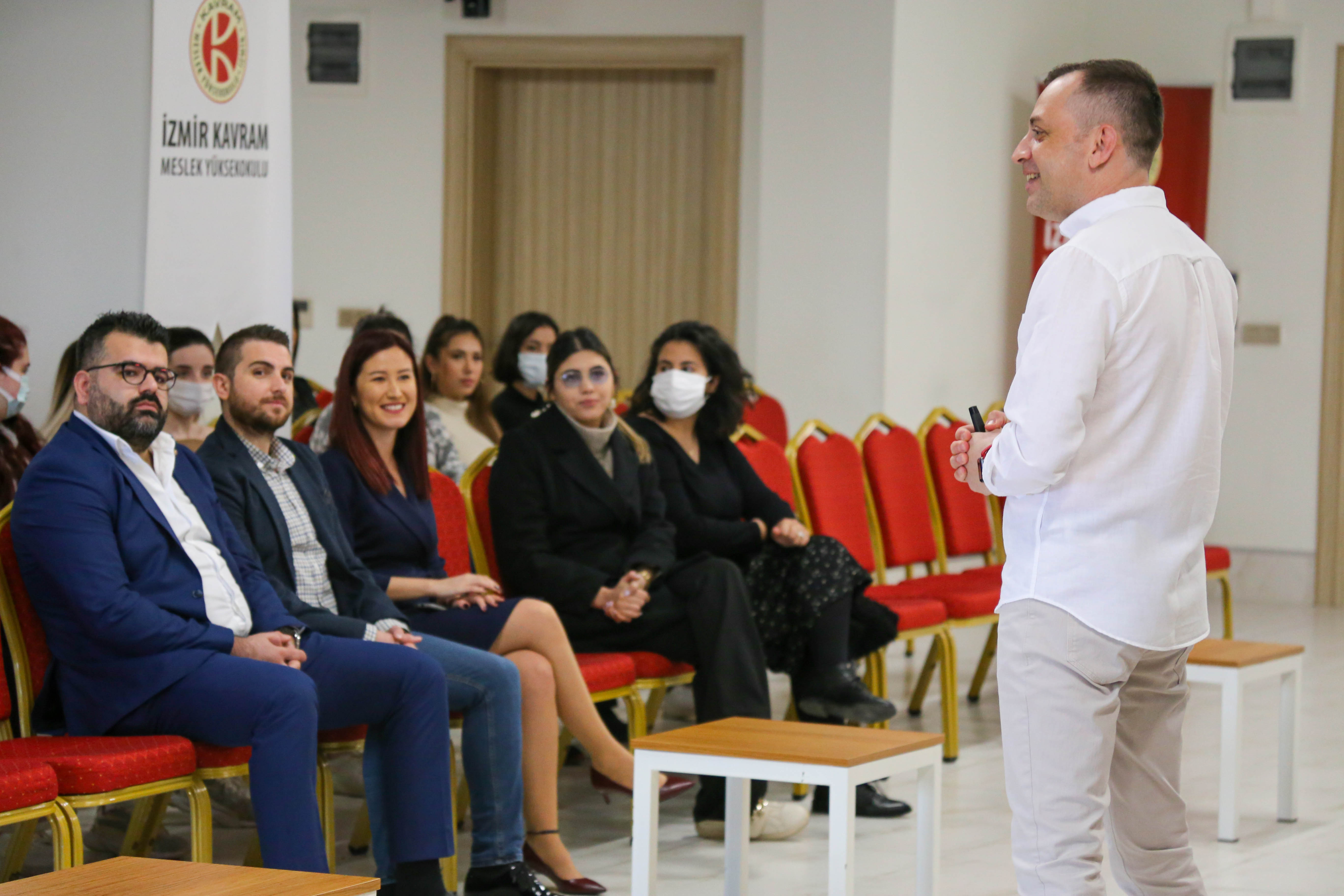 Serkan BAŞTUĞ, ‘Sağlıkta Kariyer Yolculuğu’ konulu sunumları ile program öğrencilerinin kariyer hedeflerini şekillendirecek mesleki yetkinlikler konusunda geleceğe hazırlayacak paylaşımlarda bulunmuştur. Bahar DOĞAN ise, sağlık kurumlarında işe alım sürecindeki mülakatlarla ilgili bilgilendirmeler yapmış, öğrencilerin iş başvuru sürecinde dikkat etmesi gerekenlere değinmiştir.