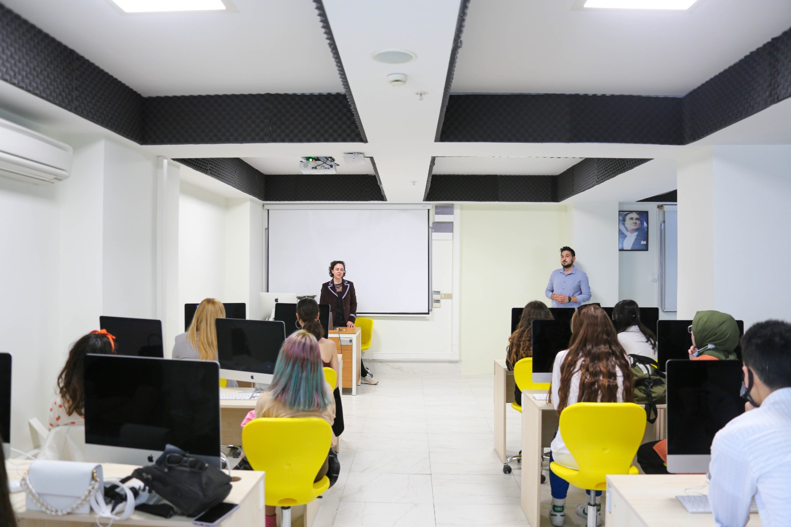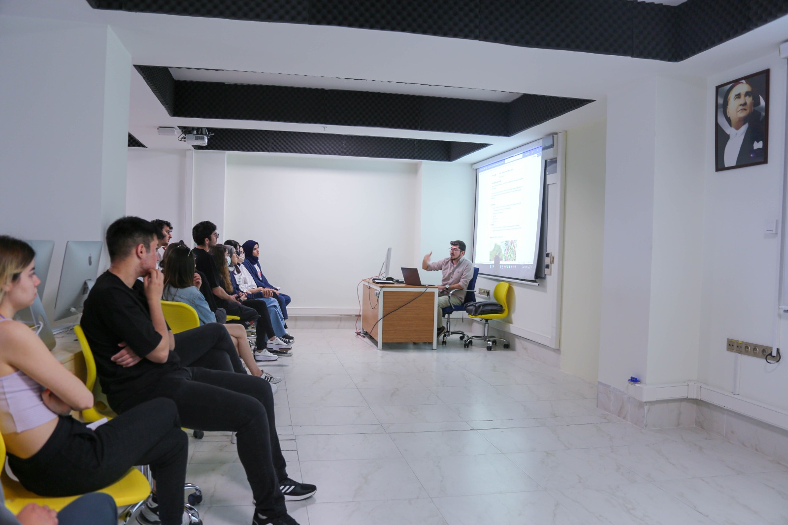 İzmir Kavram Meslek Yüksekokulu (İKMYO) Grafik Tasarımı Programı’nın düzenlediği “Kariyer Günleri” kapsamında, Yaşar Üniversitesi Animasyon Bölümü Öğretim Görevlisi Sarp SELÇUK, San Design Company Marka Direktörü Boran TÜRKAN, Şule Baş Medya ve Danışmanlık şirket sahibi Şule BAŞ, Grafik Tasarımı öğrencileriyle bir araya geldiler.