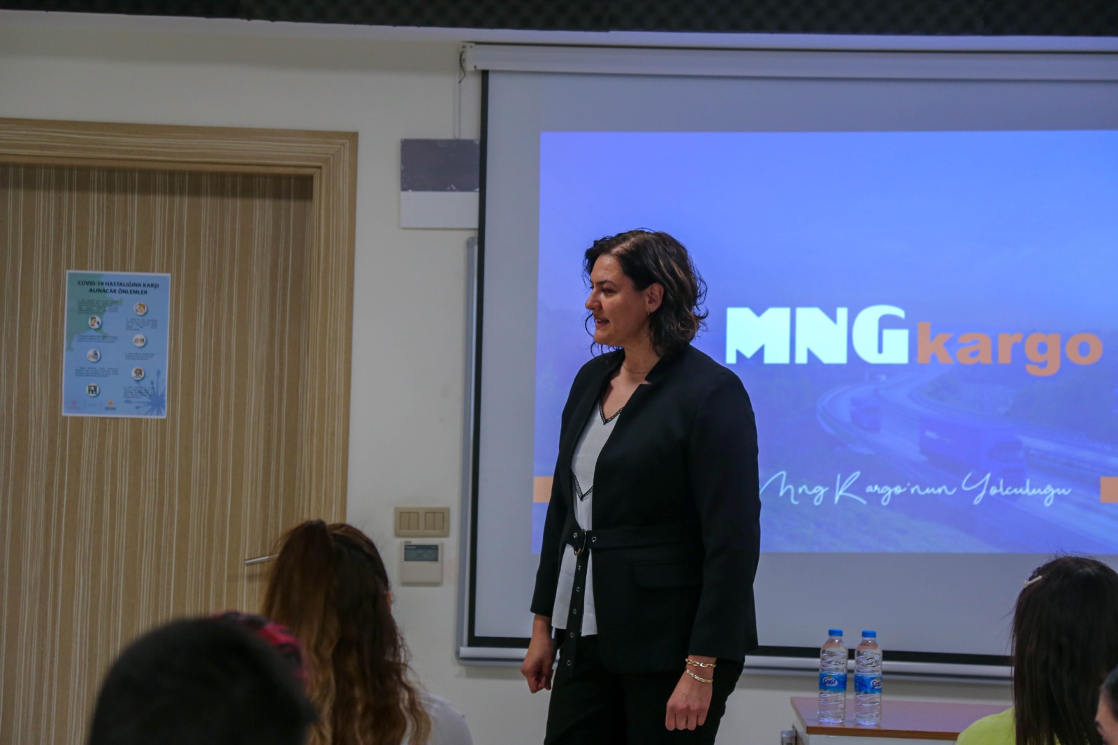 MNG Kargo İzmir Bölge Müdür Yardımcısı Sn.Canan Olgun, MNG Kargo’nun Teknolojik Aktarma Merkezi, organizasyonları içerisinde yer alan departmanlar ve yürüttükleri operasyonlar hakkında bilgiler sunmuş, bu sektörde çalışmak isteyen öğrencilerimize kariyer gelişimleri konusunda tavsiyelerde bulunmuştur. Firma ayrıca okulumuzun içerisinde bir stand kurmuş, farklı programlardan öğrencilerimizin iş başvurusu taleplerini değerlendirmek üzere almışlardır.
