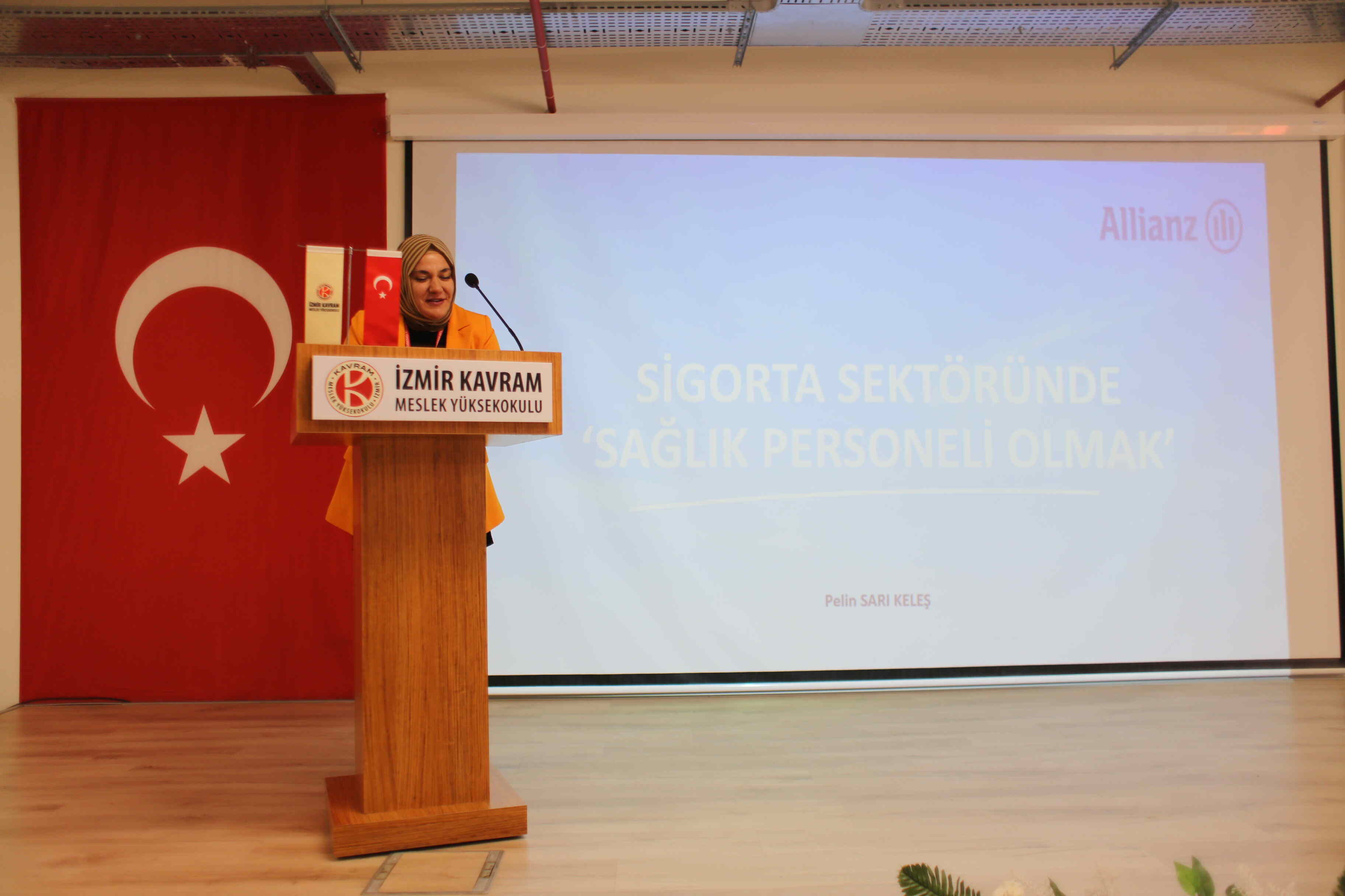 İzmir Kavram Meslek Yüksekokulu Tıbbi Hizmetler ve Teknikler Bölümü programlarından Ameliyathane Hizmetleri Programı, Anestezi Programı, İlk ve Acil Yardım Programlarının ortak çalışması ile gerçekleştirilen etkinlikte “2022-2023 Güz Kariyer Dönemi” kapsamında 07 Aralık 2022 tarihinde okulumuz konferans salonunda bir oturum düzenlendi. Düzenlenen etkinlik ile sağlık personeli olacak öğrencilerimizin çalışma alanlarında yeni bir ufuk açılması ve öğrencilere mesleklerini farklı alanlarda icra edebilecekleri platformları tanıtmak hedeflendi. Oturuma kurum personeli ve öğrenciler katıldı. Dr. Öğr. Üyesi Şule Olgun’un moderatörlüğünde gerçekleşen oturum Uzm. Hem. Pelin Sarı Keleş’in sunumu ile devam etti. Oturum sunumunda; sigortacılık, sağlık sigortacılığı, ilgili birimlerde çalışan kişilerin görev tanımları ve taşıması gereken özellikler hakkında bilgilendirme sunumu yapıldı. Sunum sırasında ve sonrasında dinleyicilerin soruları yanıtlandı. Etkinlik; Tıbbi Hizmetler ve Teknikler Bölümü Bölüm Başkanı Dr. Öğr. Üyesi Şule Olgun tarafından, program öğrencilerimiz ile bilgi ve deneyimlerini paylaşan konuğumuz Sn. Pelin Sarı Keleş’e teşekkür belgesinin takdim edilmesi ile sonlandırıldı.