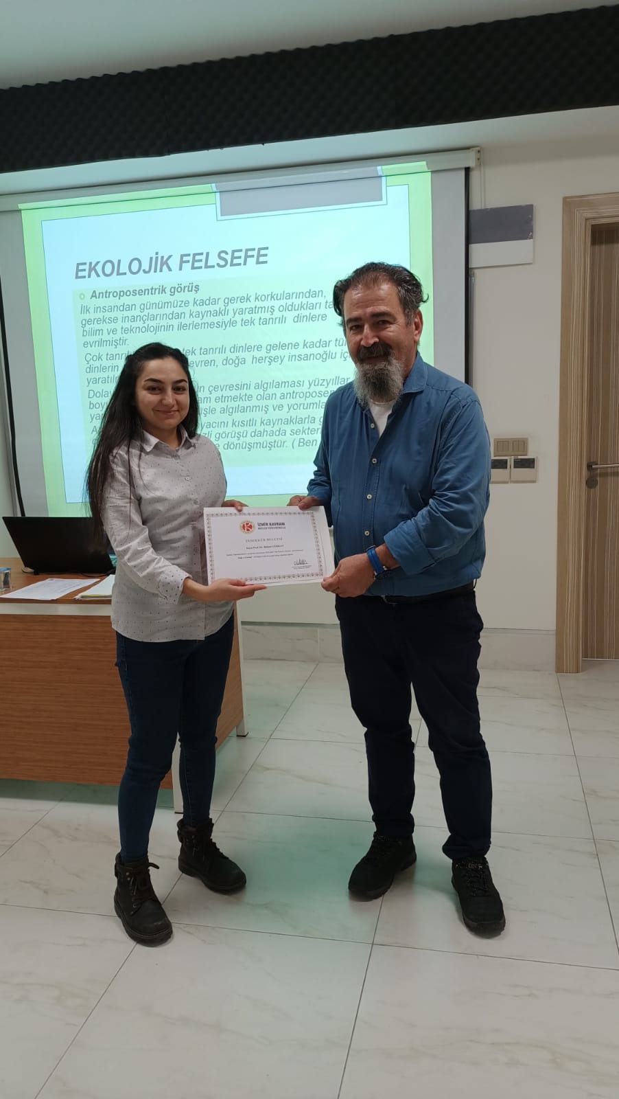 İzmir Kavram Meslek Yüksekokulu, Çevre Sağlığı Programı, Öğretim Görevlileri, Hatice DAL, Elif Dila İMANÇER ve Dr. Hasan ATEŞ tarafından "Kariyer Günleri" kapsamında 08.12.2022 tarihinde düzenlenen etkinliğe, Ekoloji alanında Profesör Behzat GÜRKAN katılım sağladı. Behzat GÜRKAN, Hacettepe Üniversitesinde Genel Sekreter Yardımcılığı ve Yaşar Üniversitesinde Genel Sekreterlik, Enstitü Müdürlüğü ve Dekan olarak görevini tamamlamıştır. Sayın GÜRKAN, etkinlikte "Doğa ve Ekoloji" başlıklı sunumunda program öğrencilerine, “Genel Ekoloji” ve “Ekolojik Felsefe” konuları hakkında önemli bilgiler verdi. Etkinlik sonunda katkılarından dolayı Sayın GÜRKAN’a teşekkür belgesi takdim edildi.