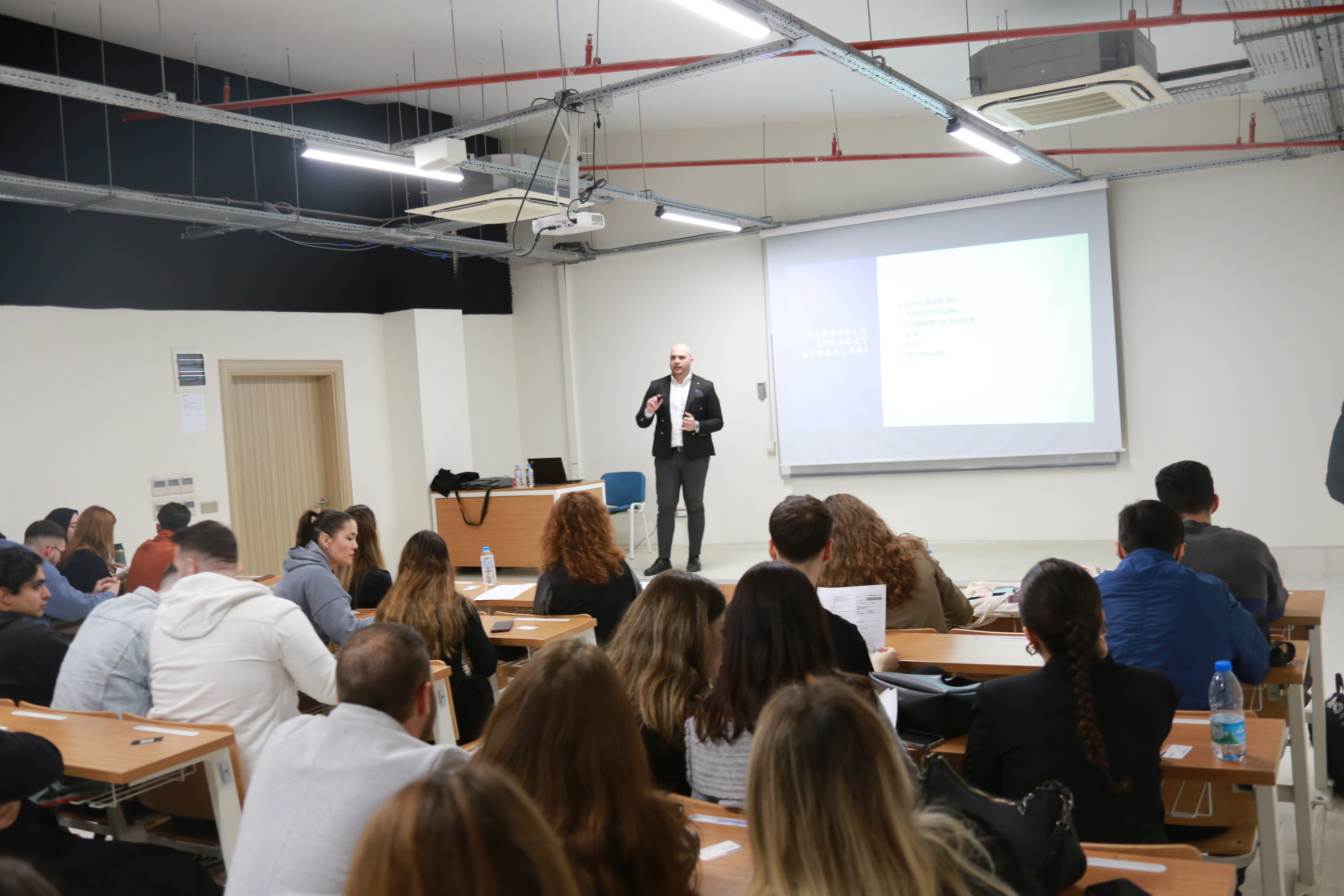 Lojistik Programı öğrencileri, “Karayolu Taşımacılığı Süreçleri ve Karayolu Taşımacılığında Kullanılan Belgeler” başlıklı sunum kapsamında karayolu ile başlayıp geniş bir yelpazede farklı konularda bilgi alma fırsatı yakaladılar.