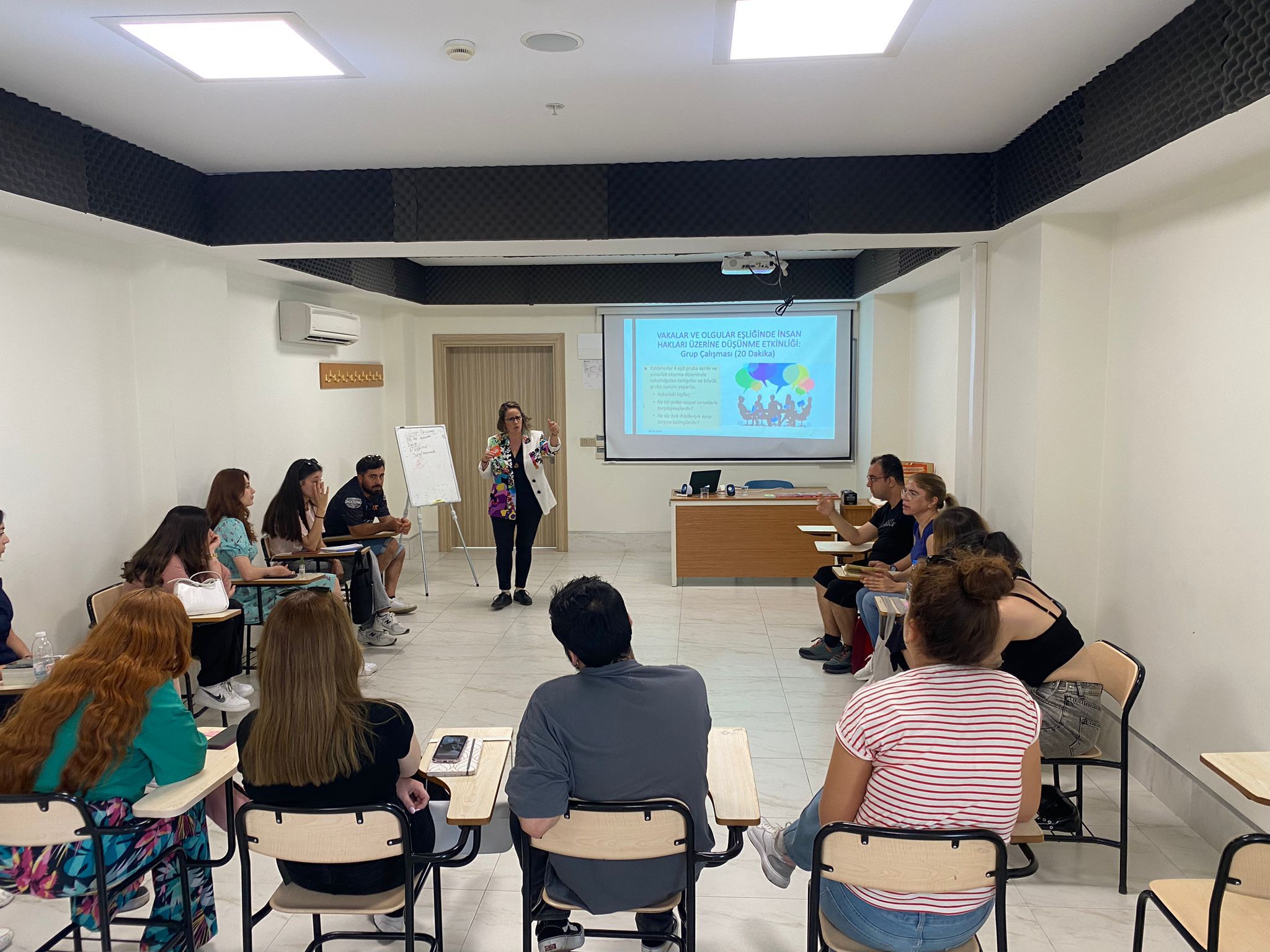 Sosyal Hizmetler Programı 2. Sınıf öğrencilerine yönelik, ‘İnsan Hakları ve Sosyal Hizmet’ dersi kapsamında düzenlenen “İnsan Hakları Atölyesi” etkinliği, İKMYO Sosyal Hizmetler Programı Danışma Kurulu Üyesi Sosyal Hizmet Uzmanı Rana Dayıoğlu Oyman’ın katılımıyla gerçekleşti.