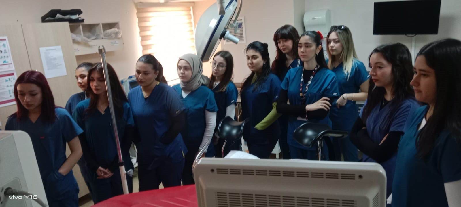 Kurumun anestezi teknikeri tarafından anestezi cihazının kalibrasyonu öğrencilere anlatıldı ve uygulamalı olarak gösterildi. Öğrencilerin, cihazın çalışır durumdaki aksamları hakkında ve mesleğe yönelik soruları yanıtlandı.